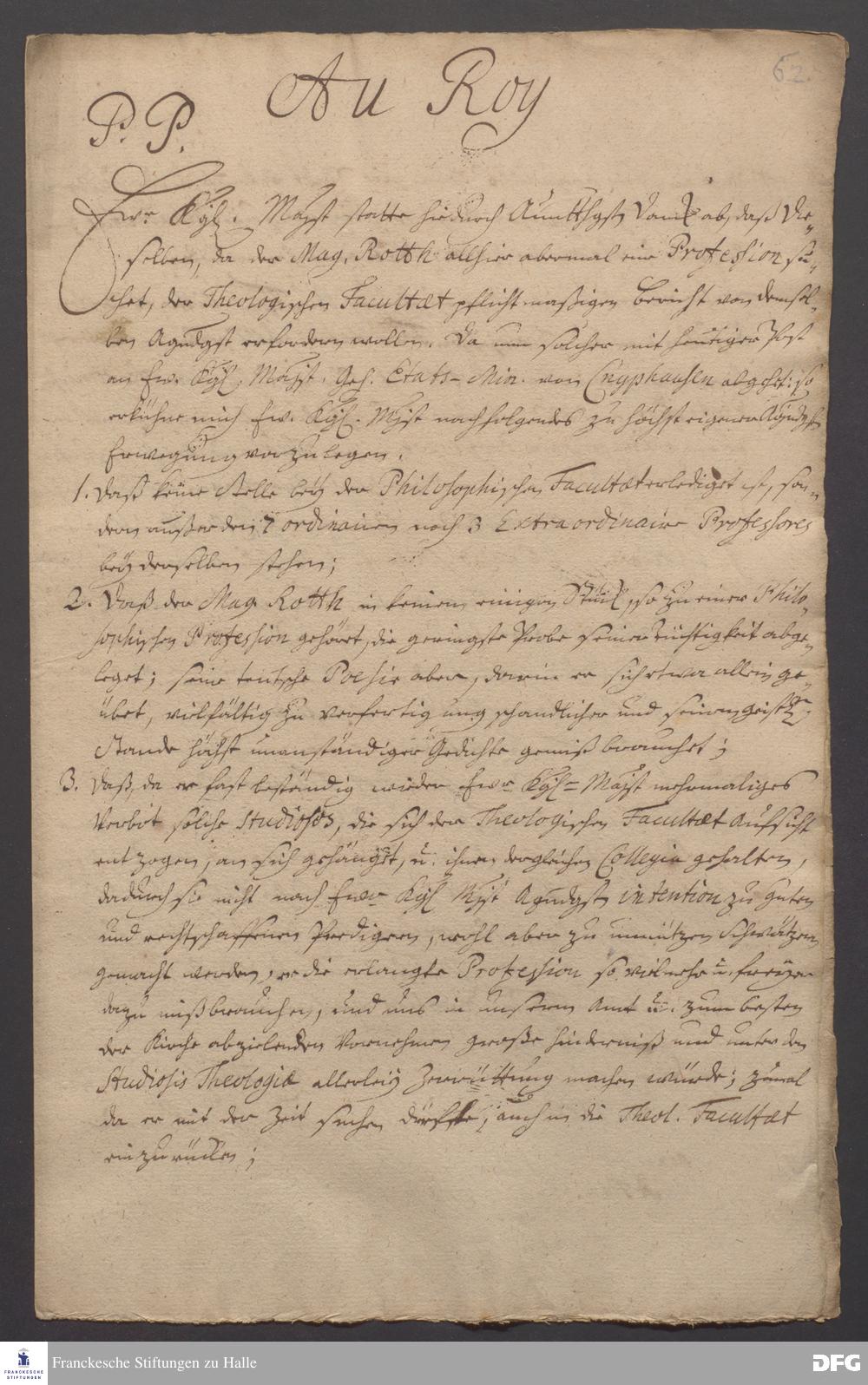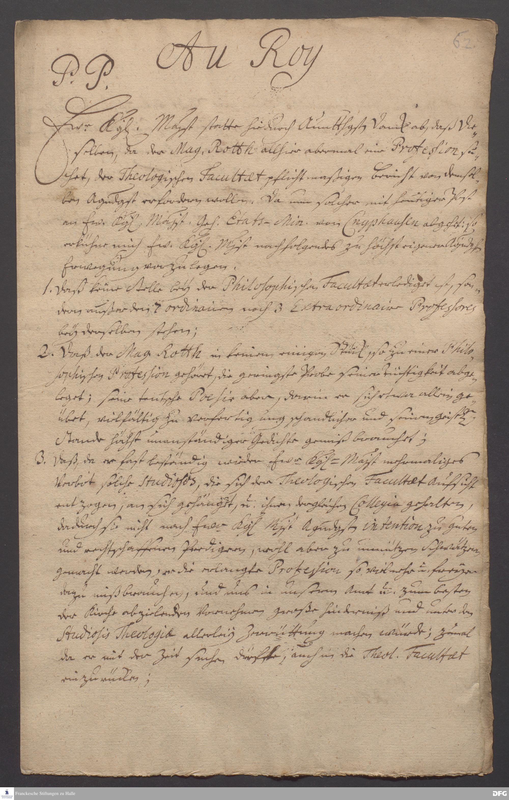 Brief von August Hermann Francke an Friedrich Wilhelm I., König in Preußen.