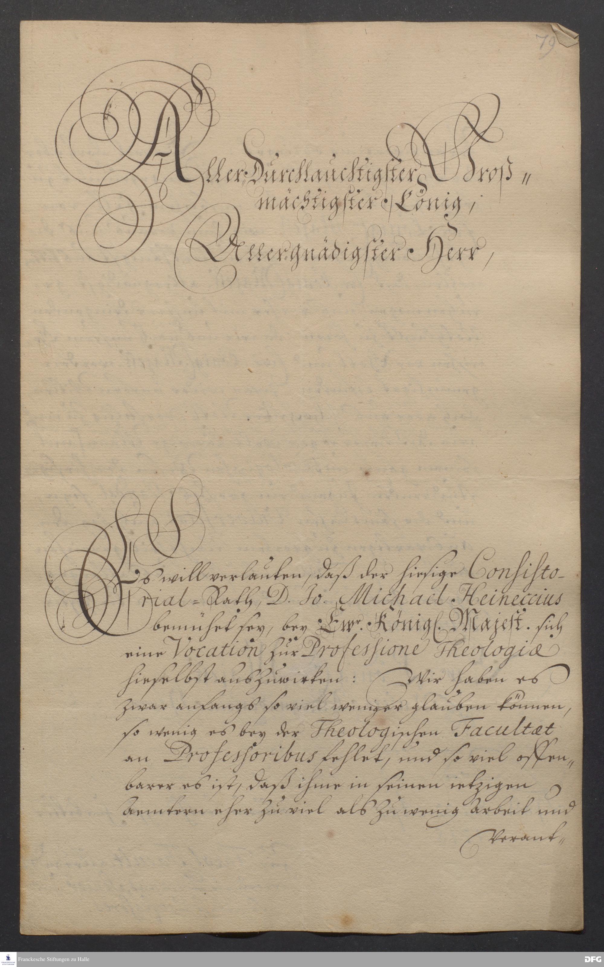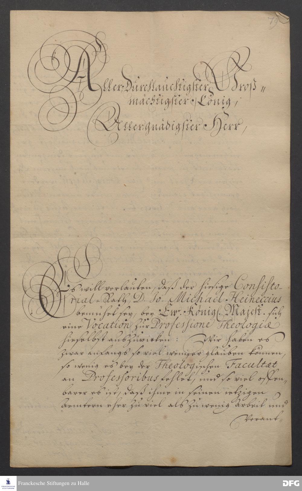 Brief von [August Hermann Francke, Paul Anton, Joachim Just Breithaupt, Johann Heinrich Michaelis und Joachim Lange] an Friedrich Wilhelm I., König in Preußen.