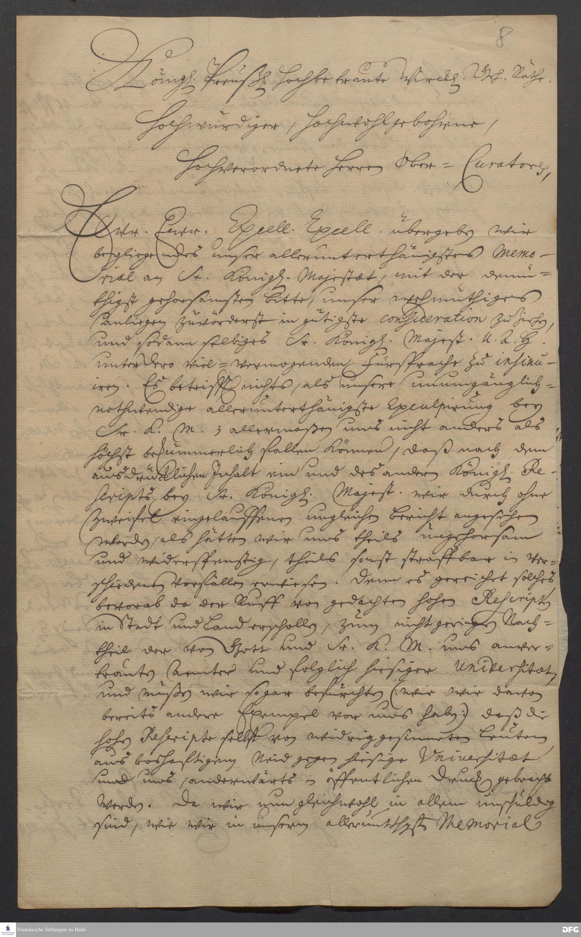 Brief von [August Hermann Francke, Paul Anton, Johann Heinrich Michaelis, Joachim Lange und Joachim Just Breithaupt] an [Marquard Ludwig von Printzen und Johan Moritz von Blaspiel].