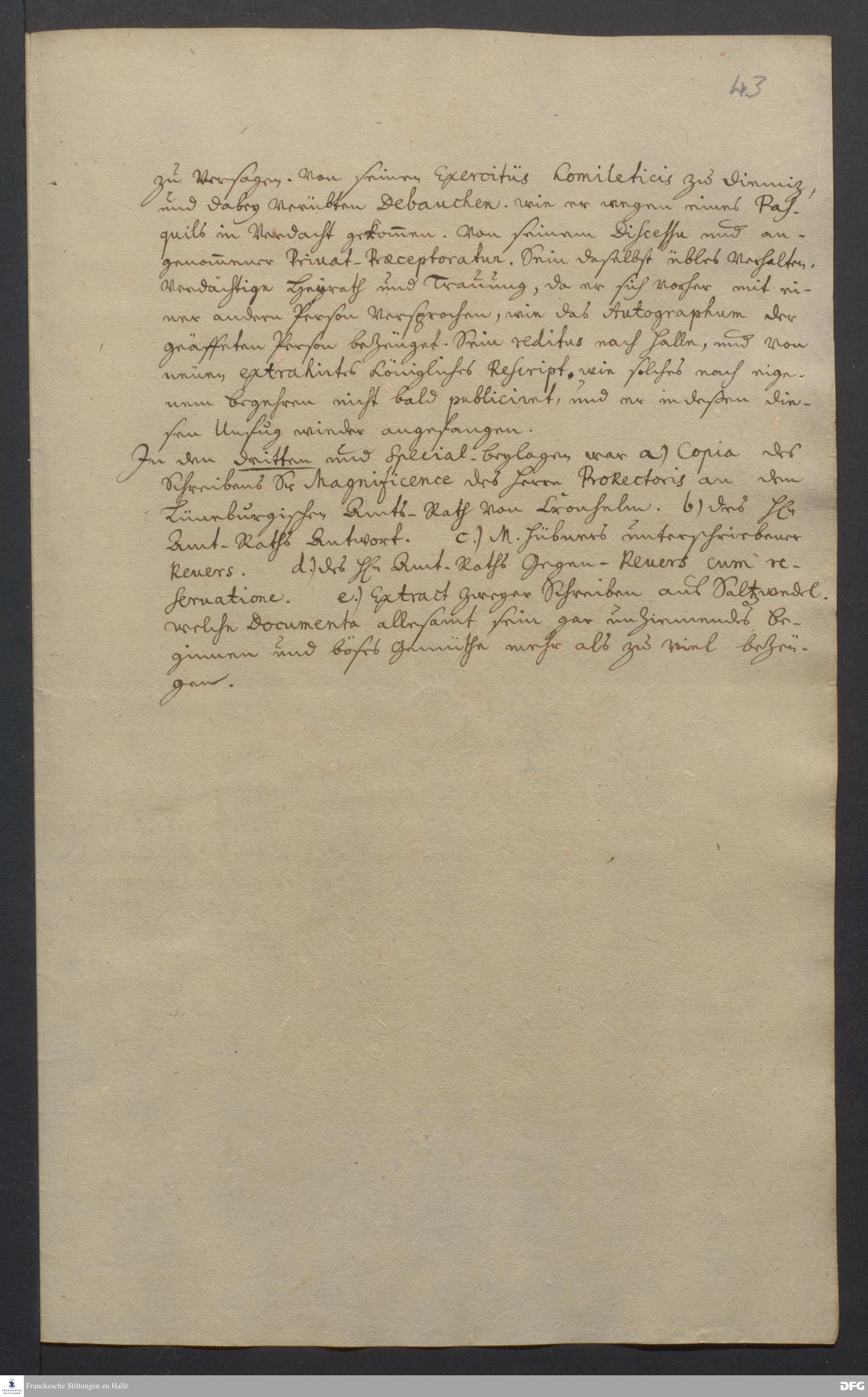 Brief der [Paul Anton, Johann Heinrich Michaelis, Joachim Lange, Johann Daniel Herrnschmidt] an August Hermann Francke und die Professoren der Universität Halle.