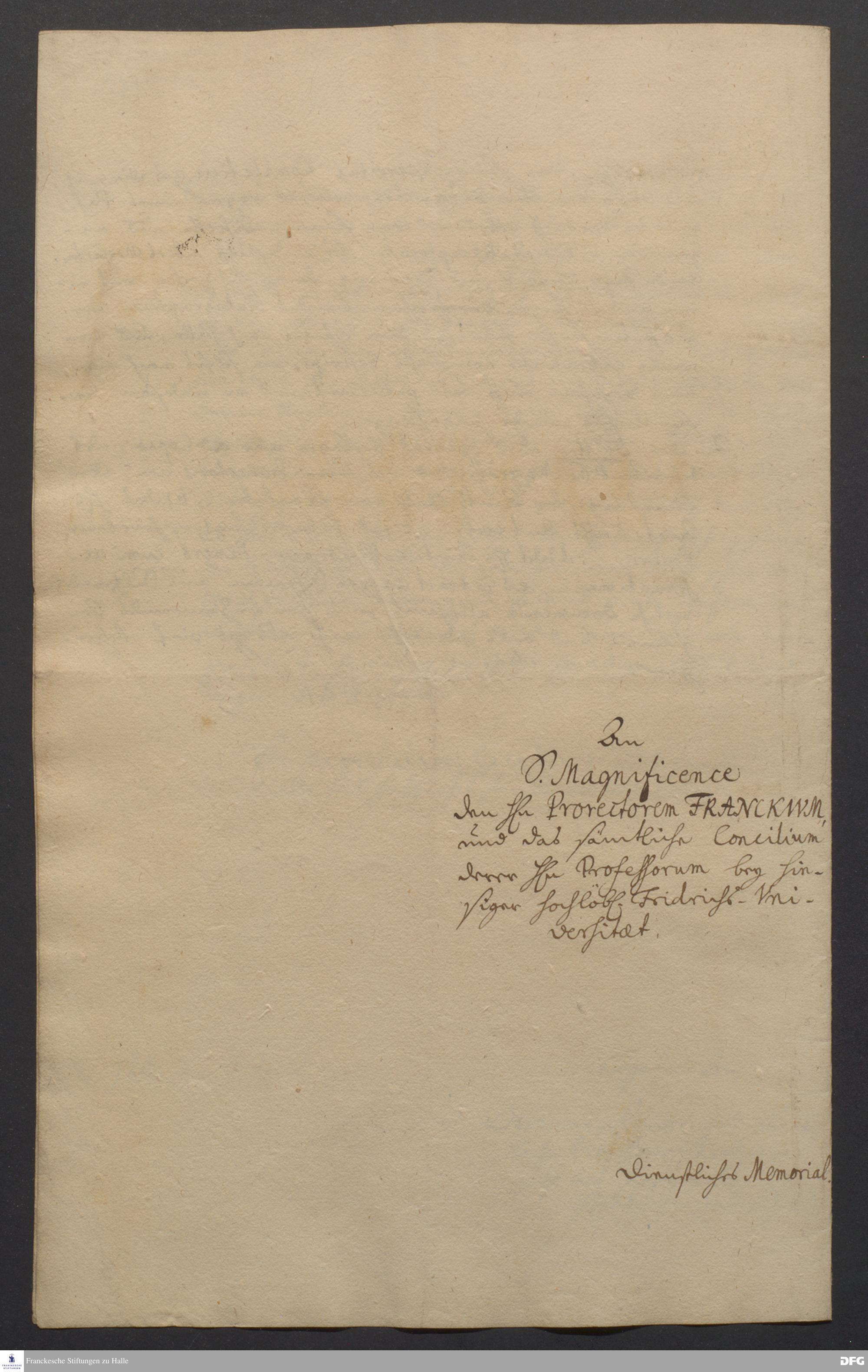 Brief der [Paul Anton, Johann Heinrich Michaelis, Joachim Lange, Johann Daniel Herrnschmidt] an August Hermann Francke und die Professoren der Universität Halle.