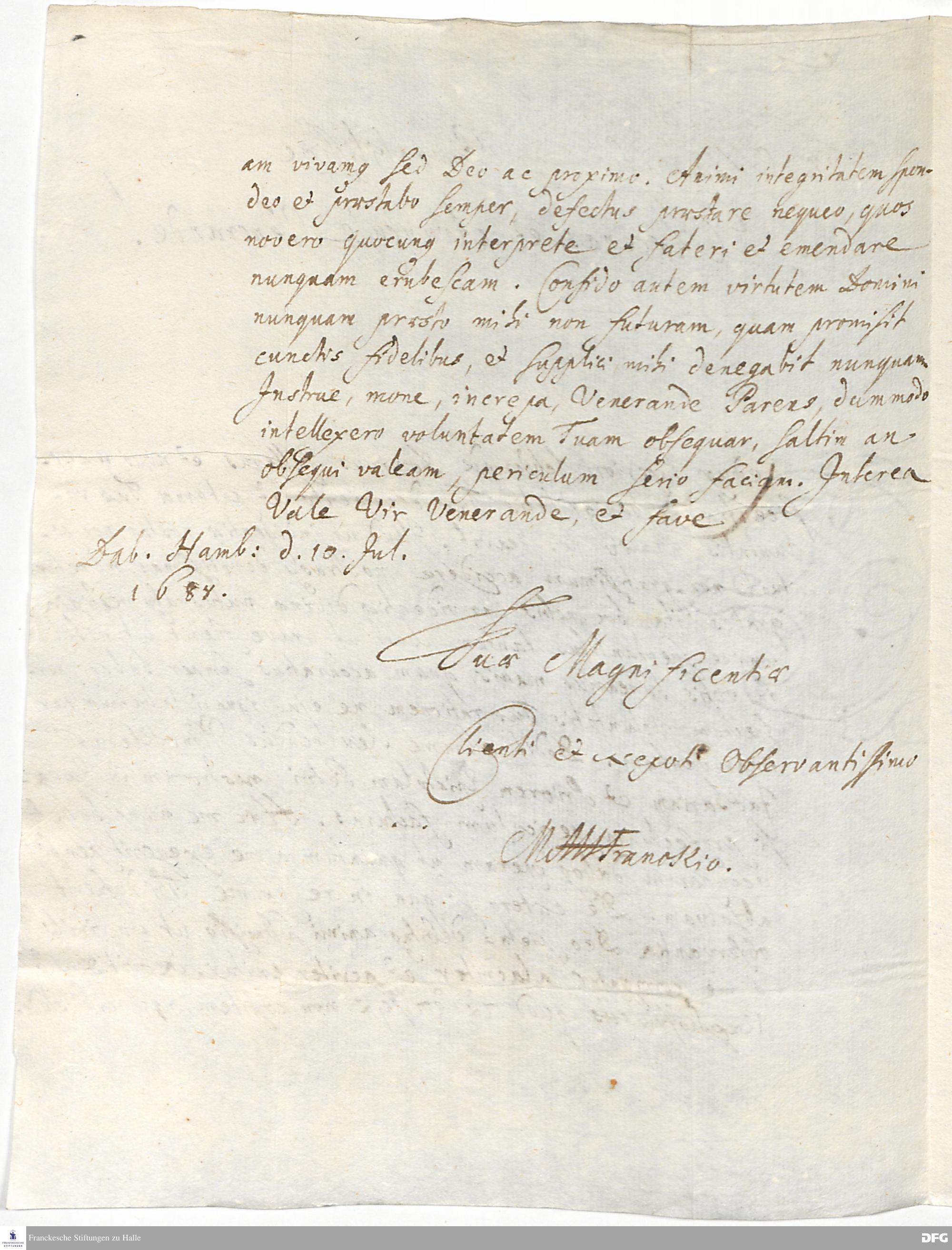 Brief von August Hermann Francke an Anton Hinrich Gloxin.