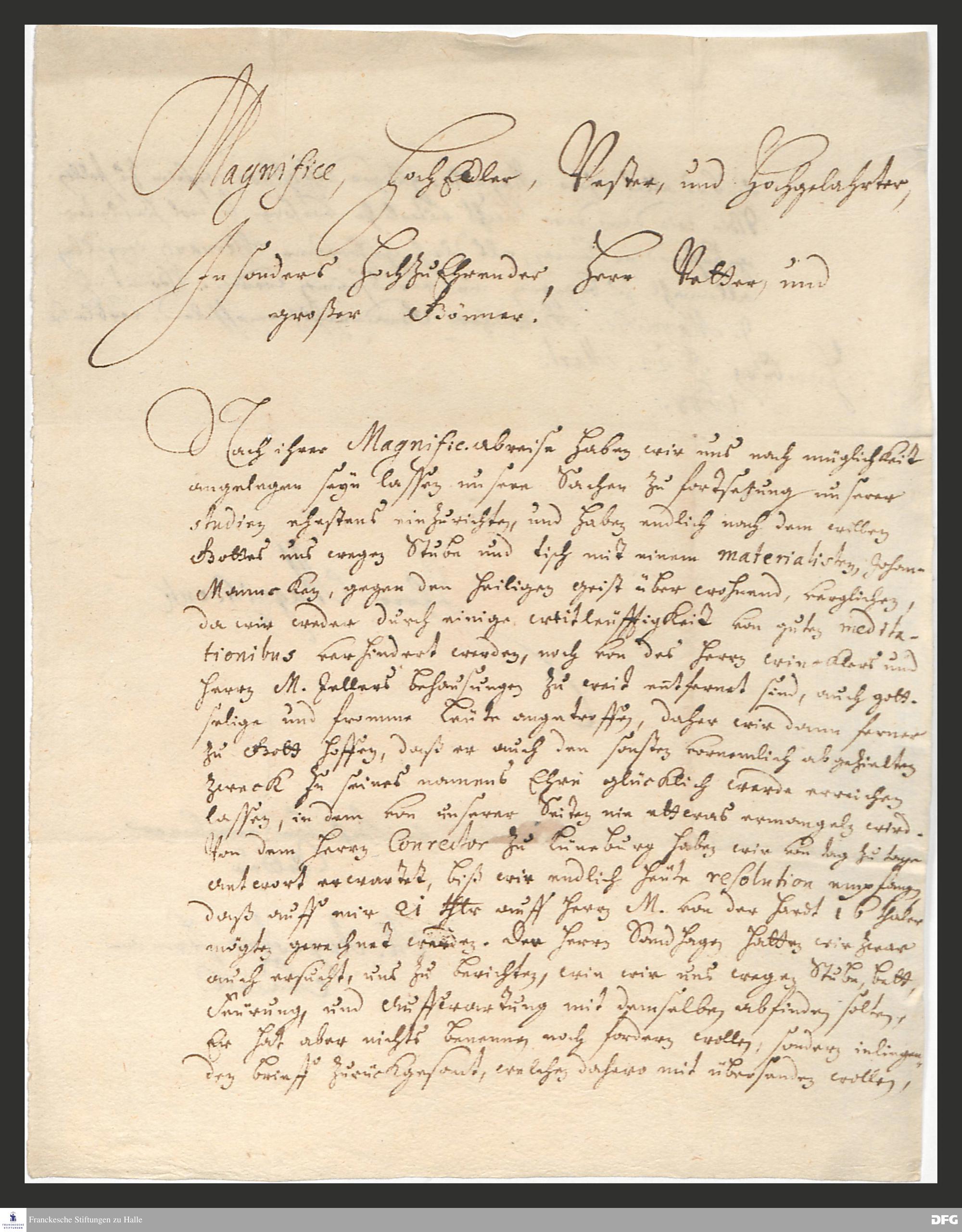 Brief von August Hermann Francke an Anton Hinrich Gloxin.