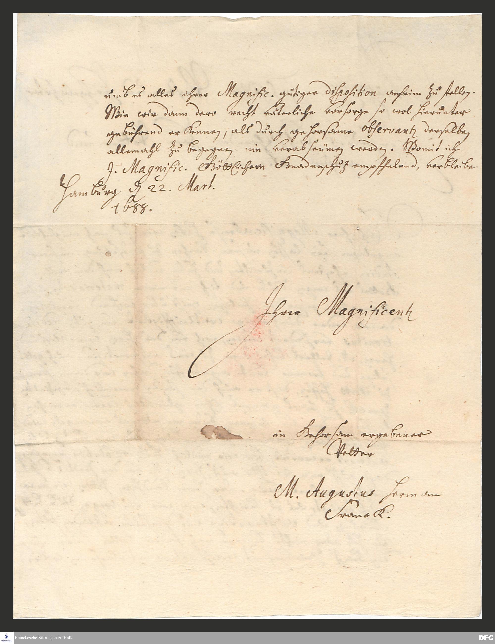 Brief von August Hermann Francke an Anton Hinrich Gloxin.