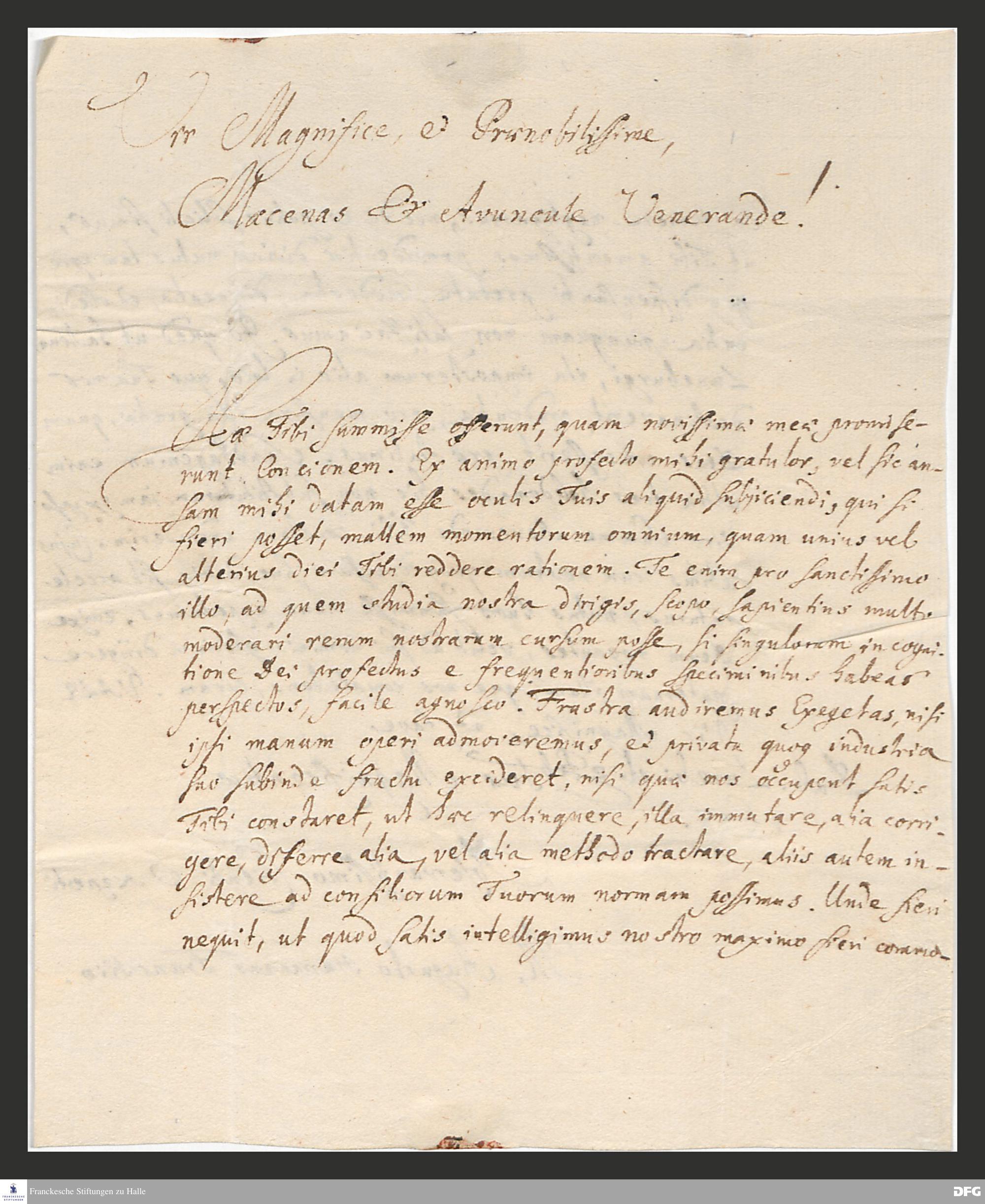 Brief von August Hermann Francke an Anton Hinrich Gloxin.