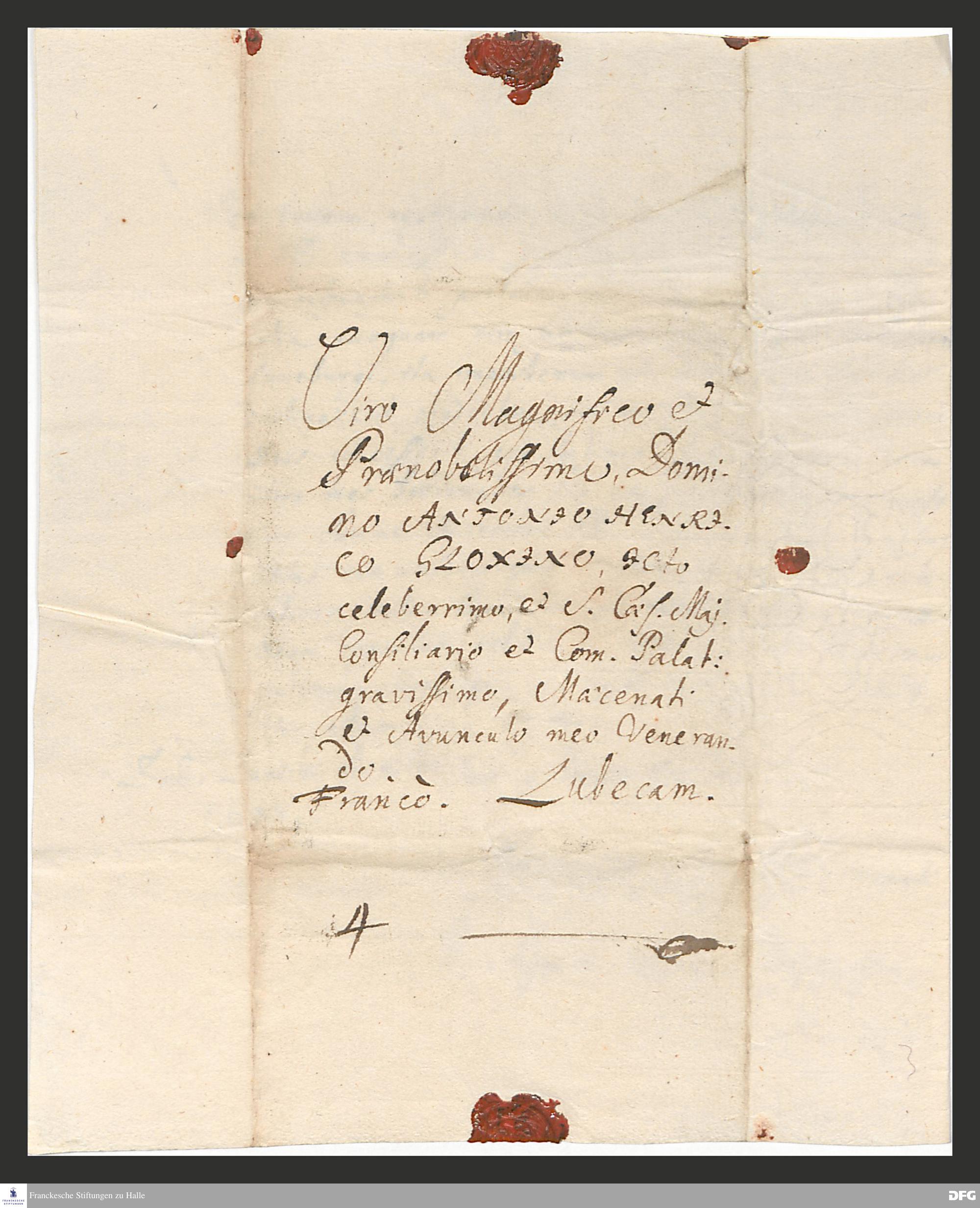 Brief von August Hermann Francke an Anton Hinrich Gloxin.