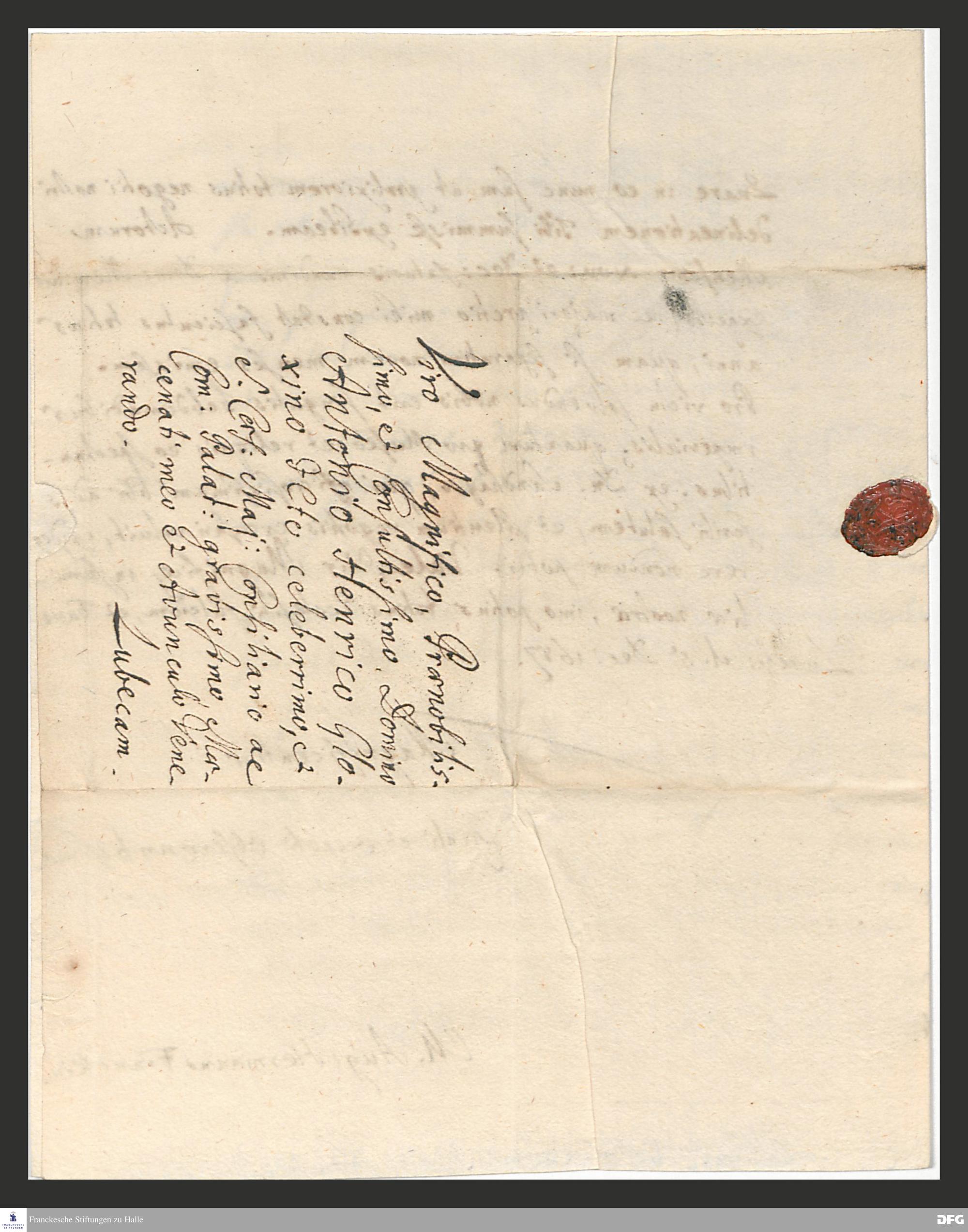 Brief von August Hermann Francke an Anton Hinrich Gloxin.