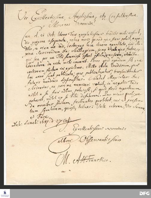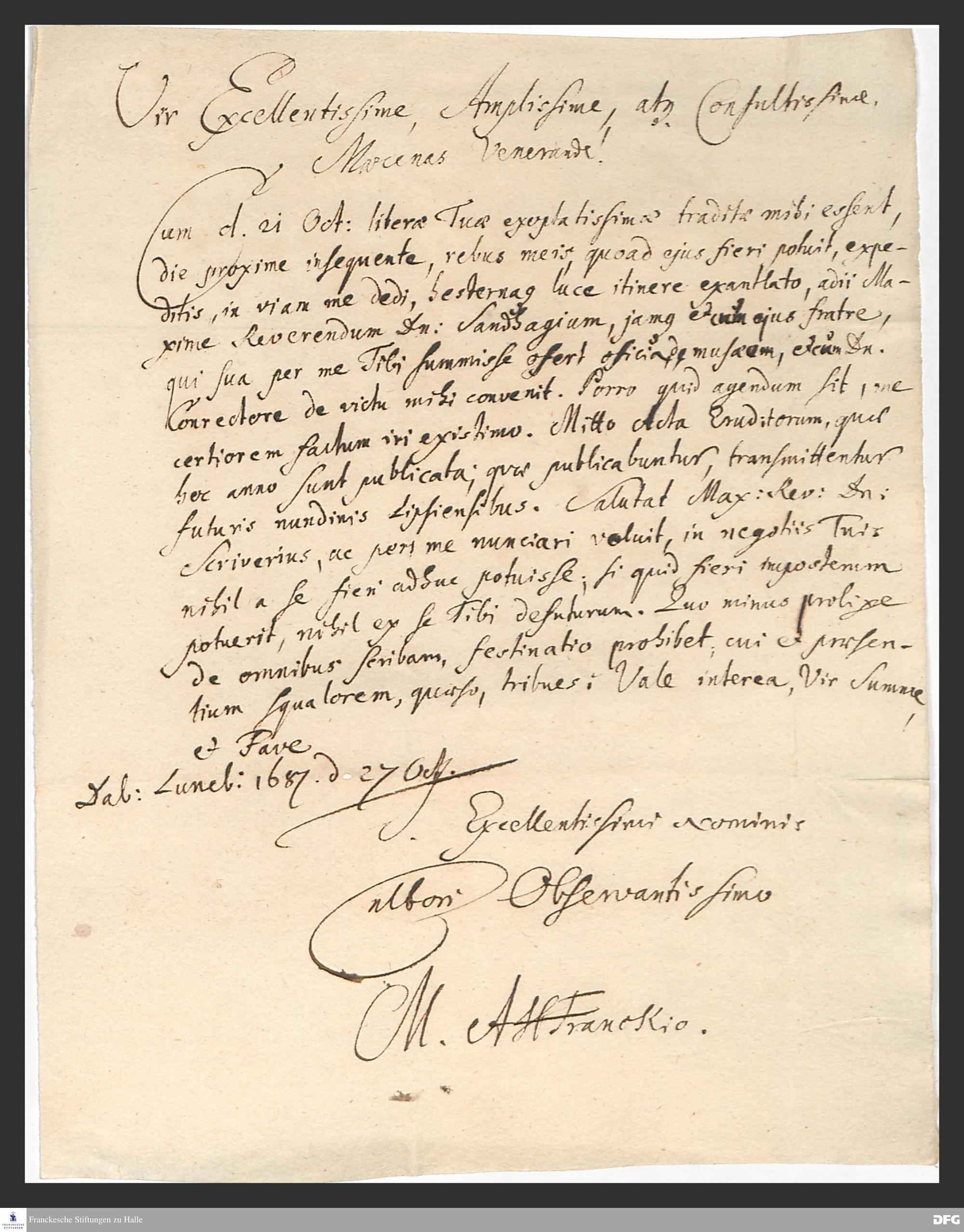 Brief von August Hermann Francke an Anton Hinrich Gloxin.