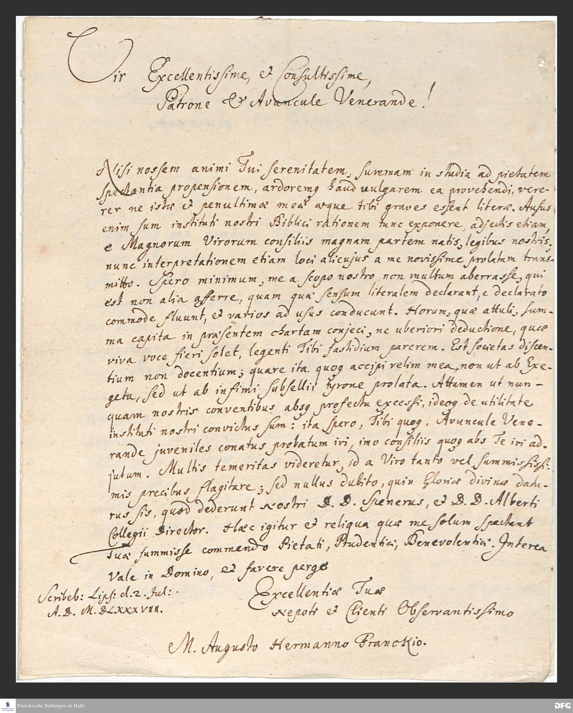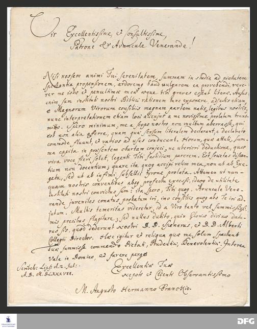 Brief von August Hermann Francke an Anton Hinrich Gloxin.