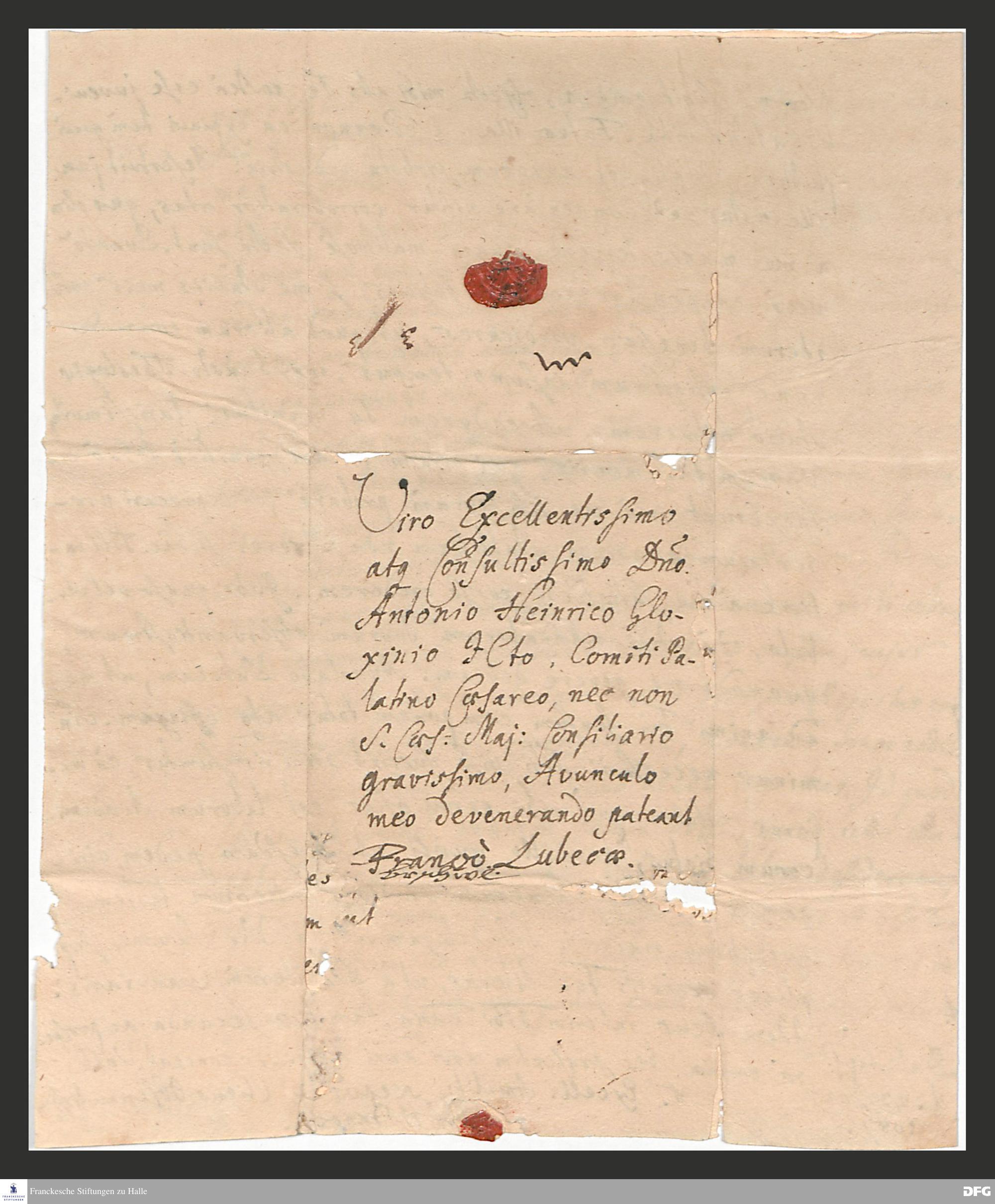 Brief von August Hermann Francke an Anton Hinrich Gloxin.