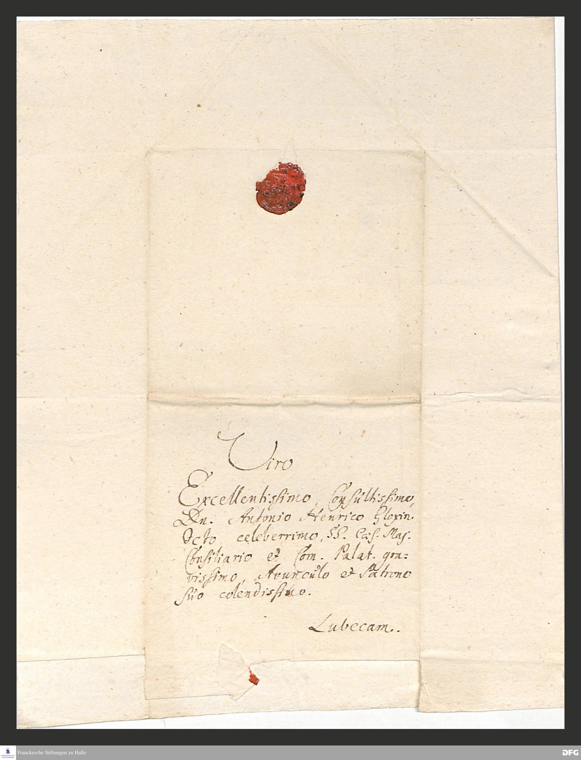 Brief von August Hermann Francke an Anton Hinrich Gloxin.