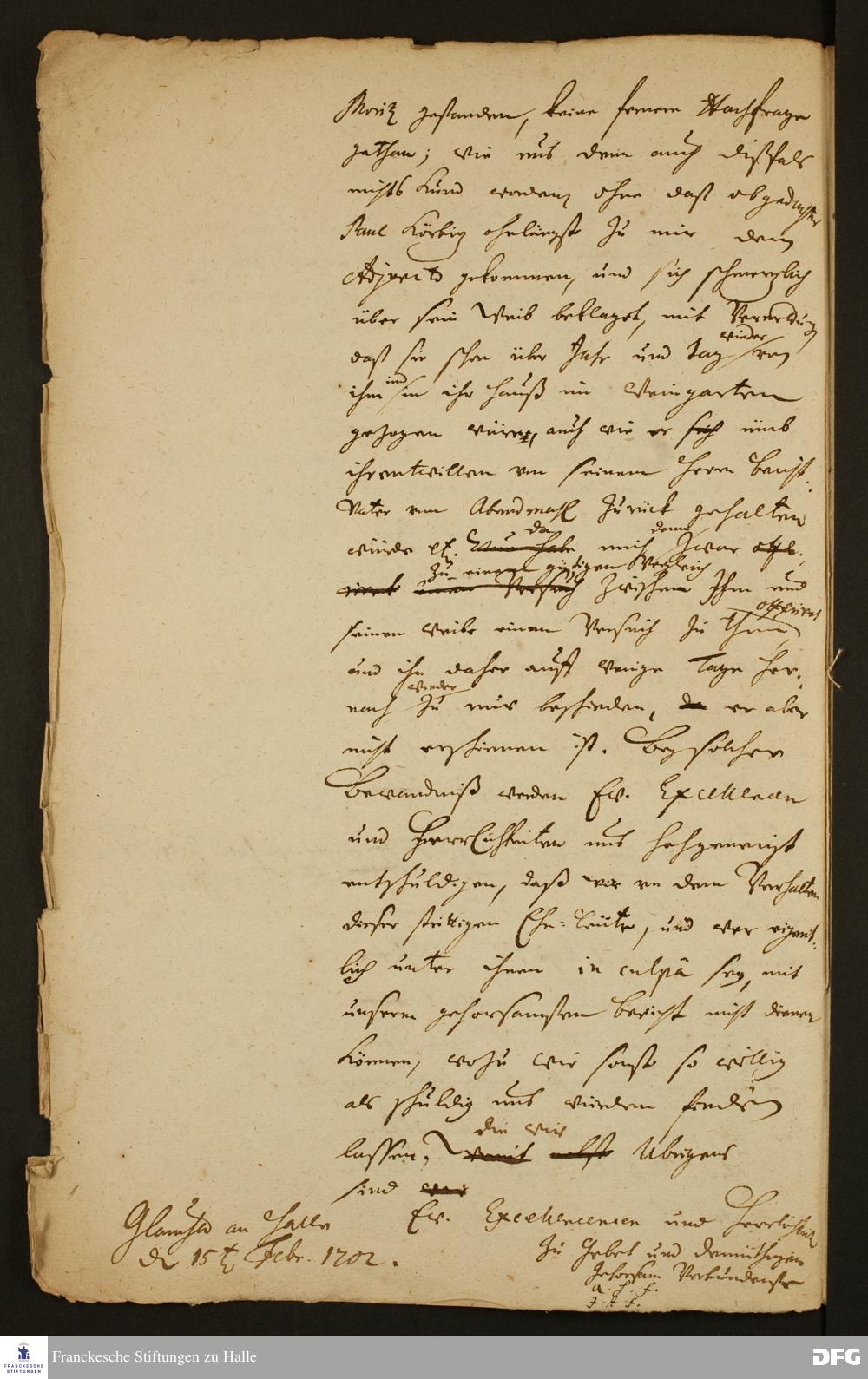 Brief von August Hermann Francke und Johann Anastasius Freylinghausen an [Gottfried von Jena und Ludwig Gebhard Kraut].