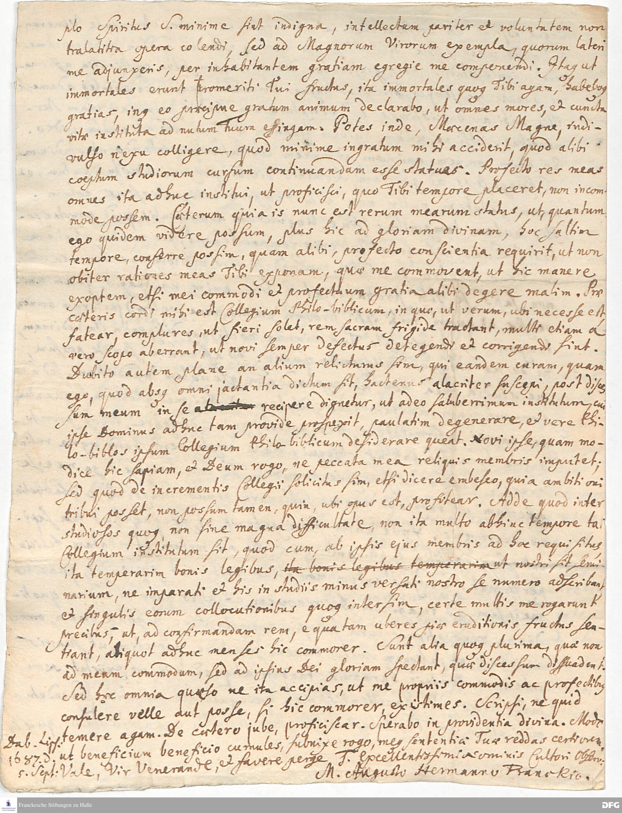 Brief von August Hermann Francke an Anton Hinrich Gloxin.