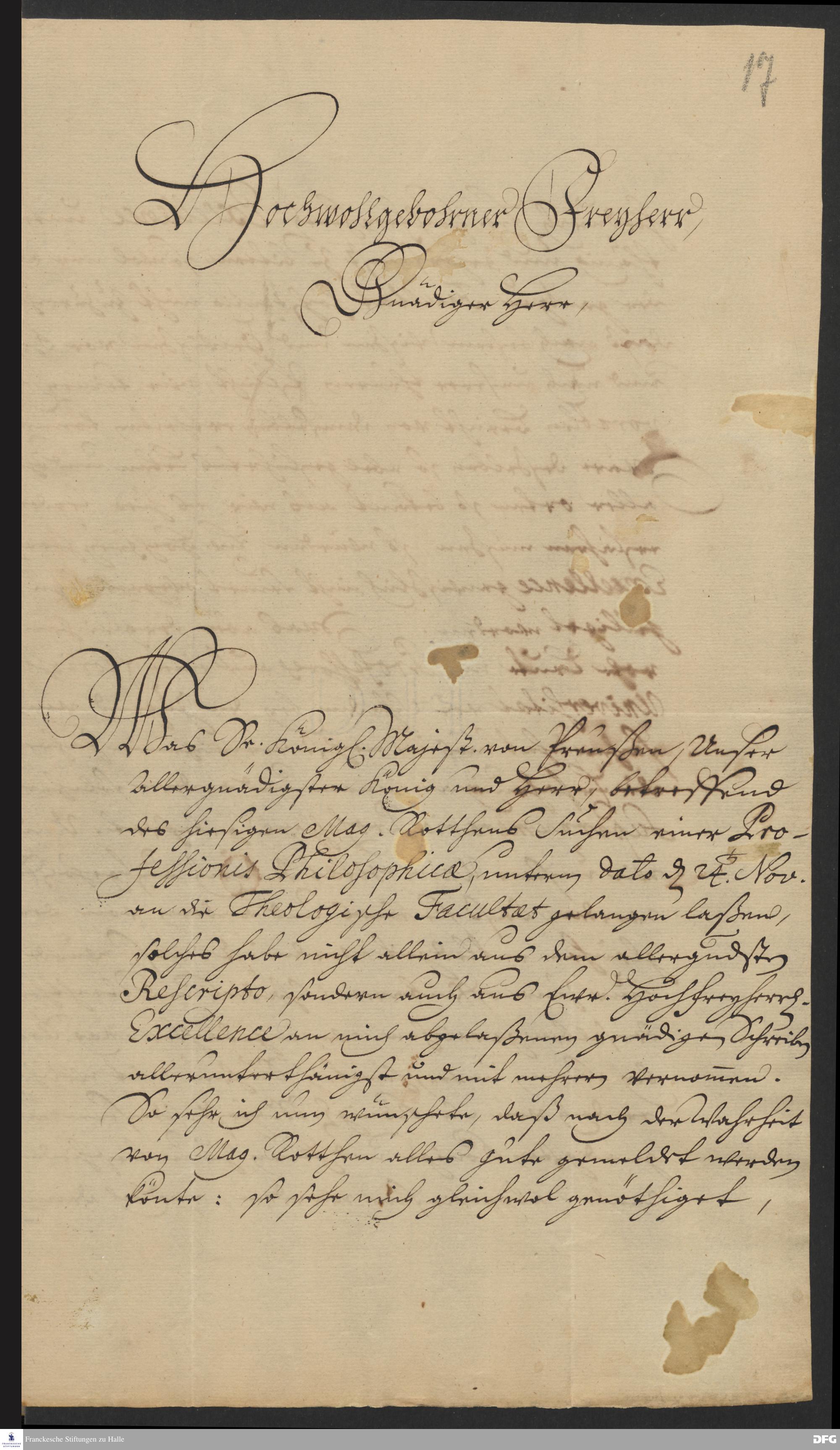 Brief von August Hermann Francke an Friedrich Ernst von Knyphausen.