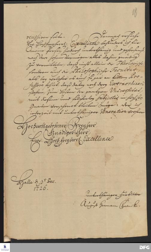 Brief von August Hermann Francke an Friedrich Ernst von Knyphausen.