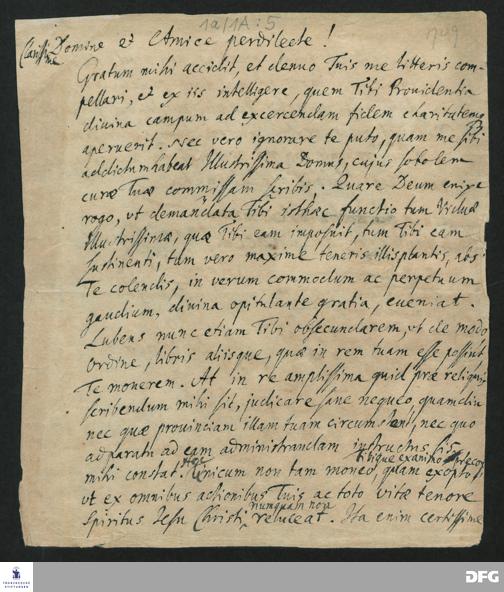 Brief von August Hermann Francke an Caspar Diedrich von Dahlen.