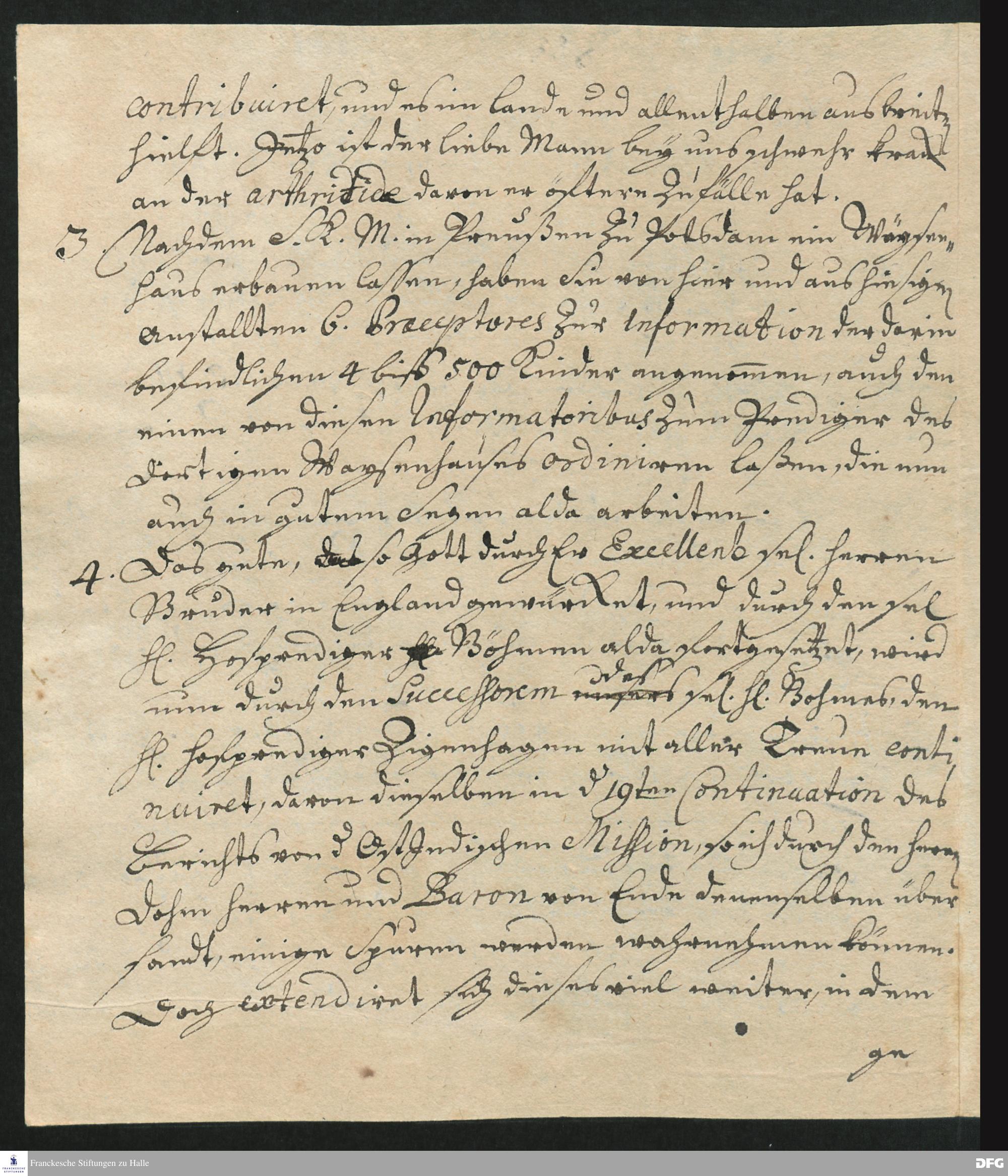 Berichtsfragment von August Hermann Francke an Georg Melchior v. Ludolf.