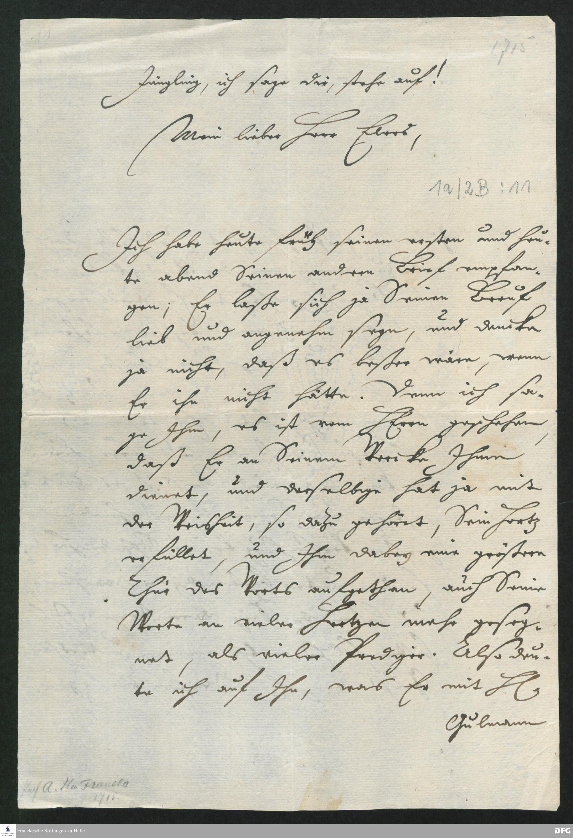 Brief von August Hermann Francke an Heinrich Julius Elers.