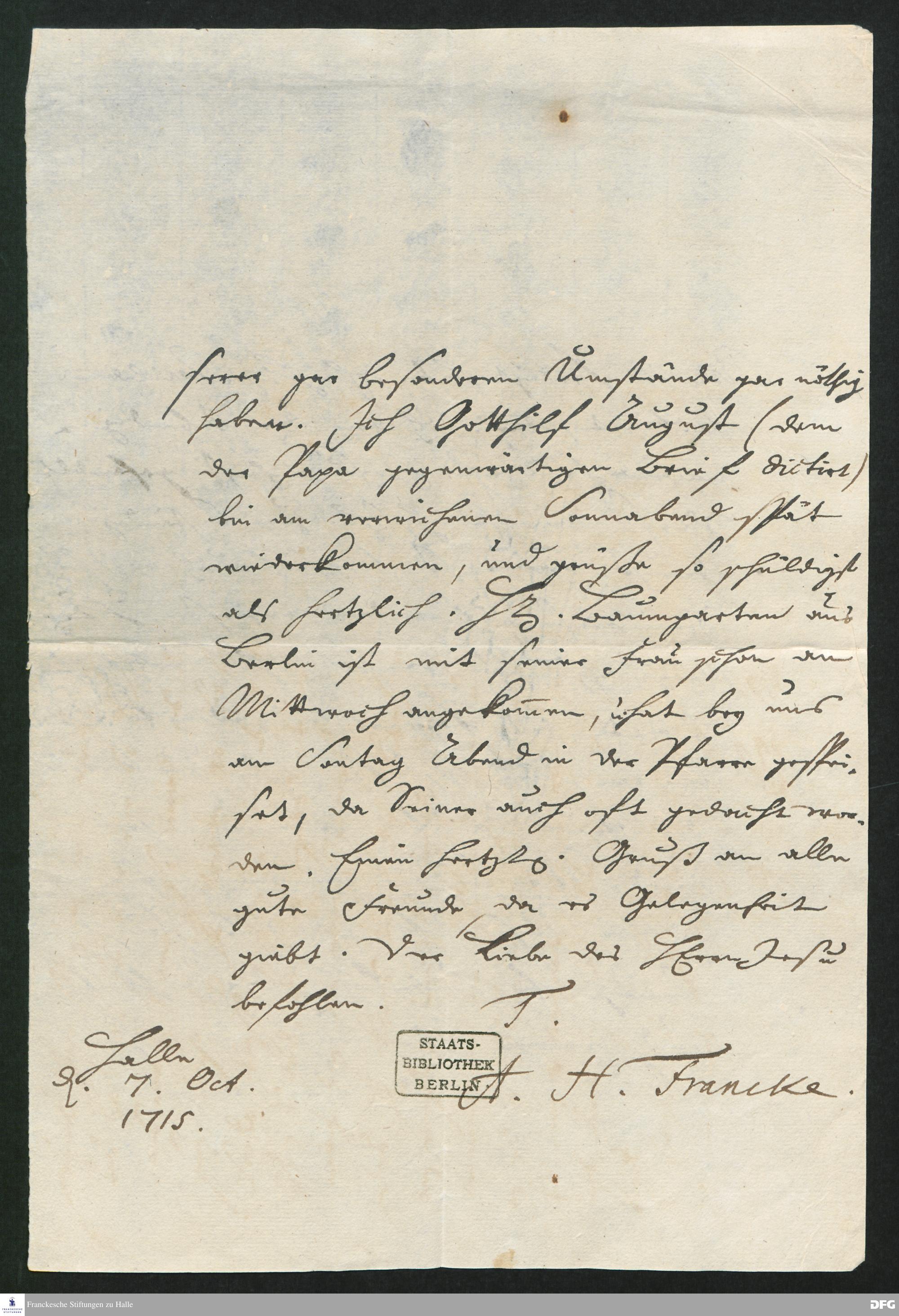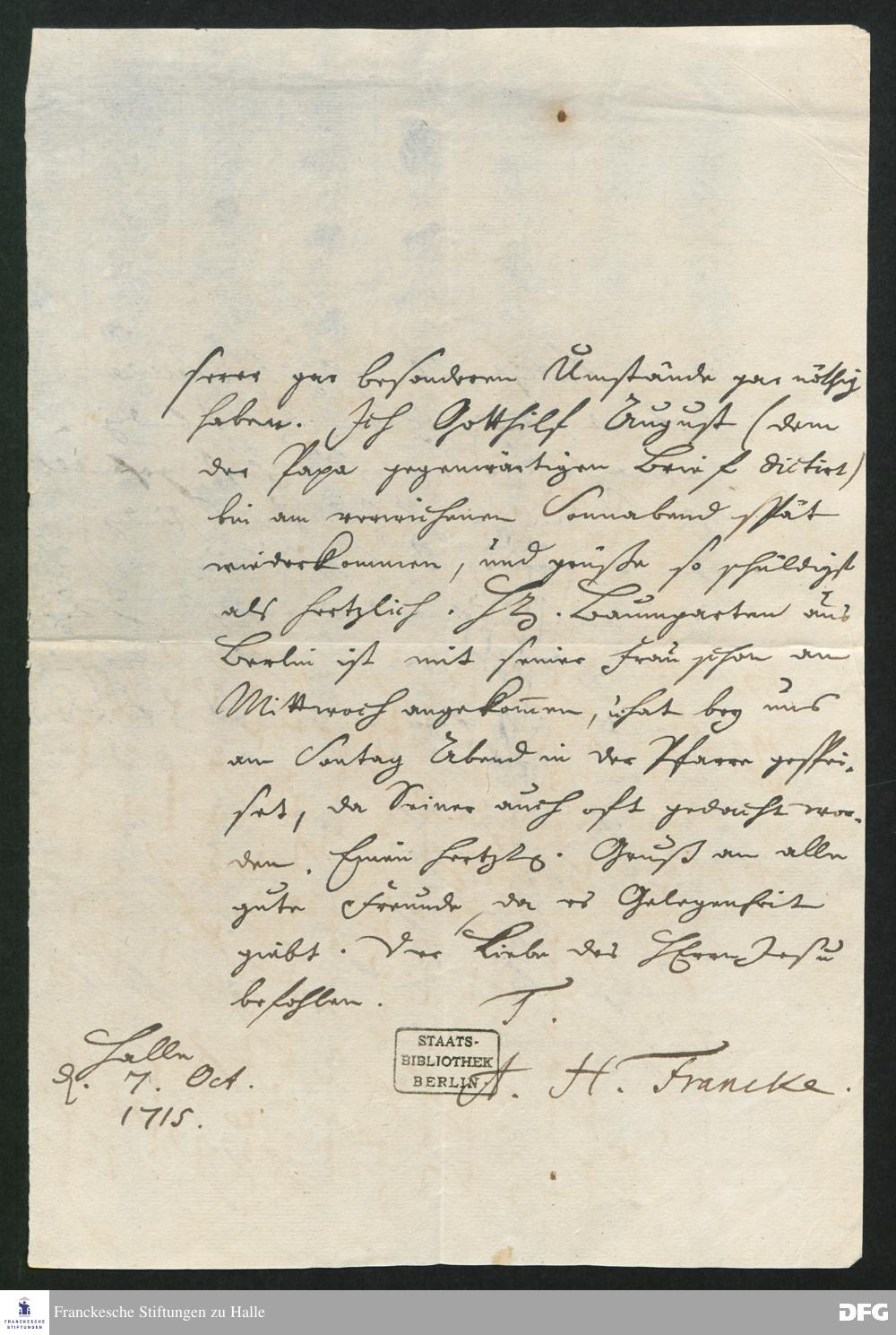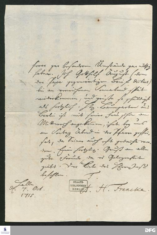 Brief von August Hermann Francke an Heinrich Julius Elers.