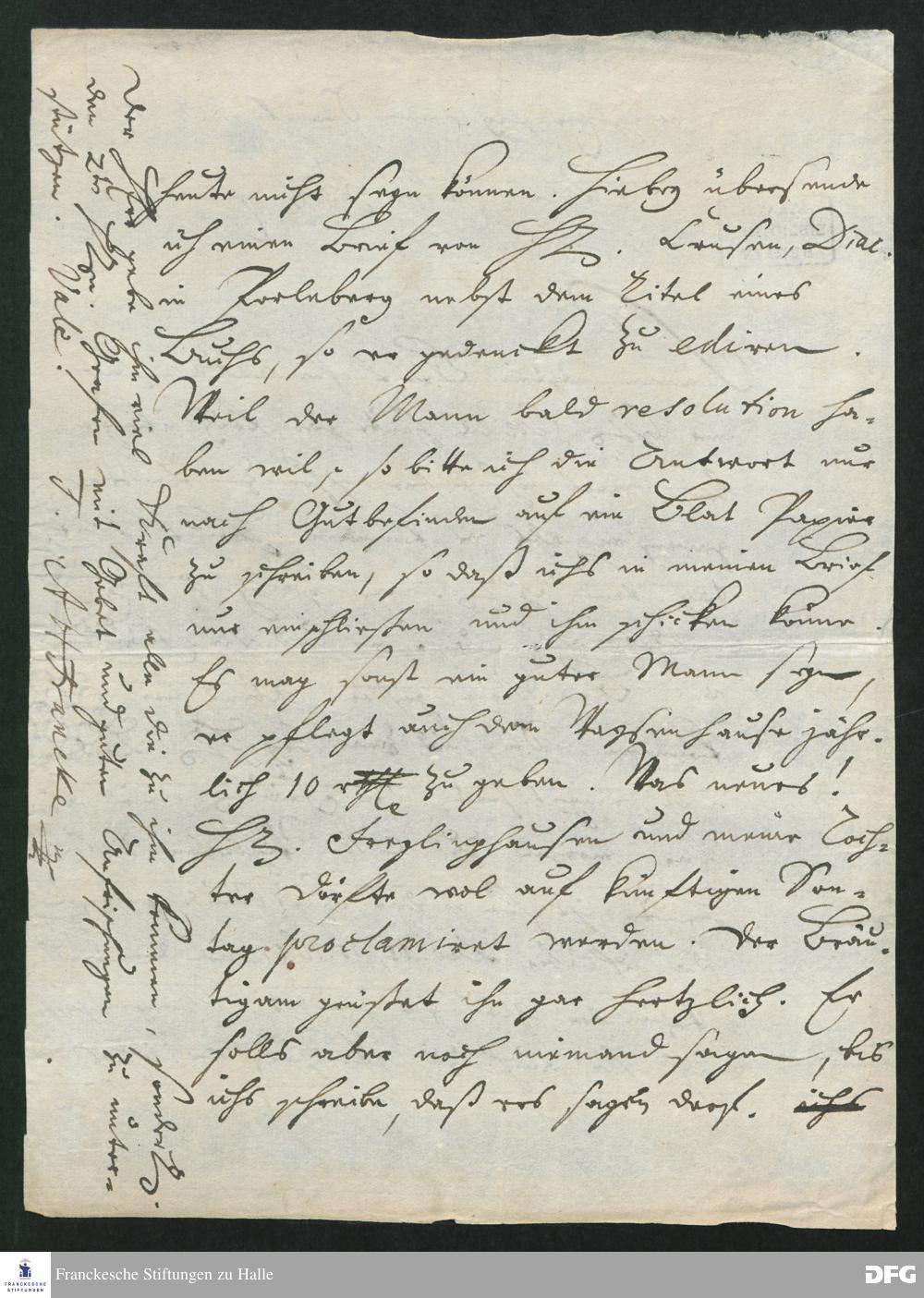 Brief von August Hermann Francke an Heinrich Julius Elers.