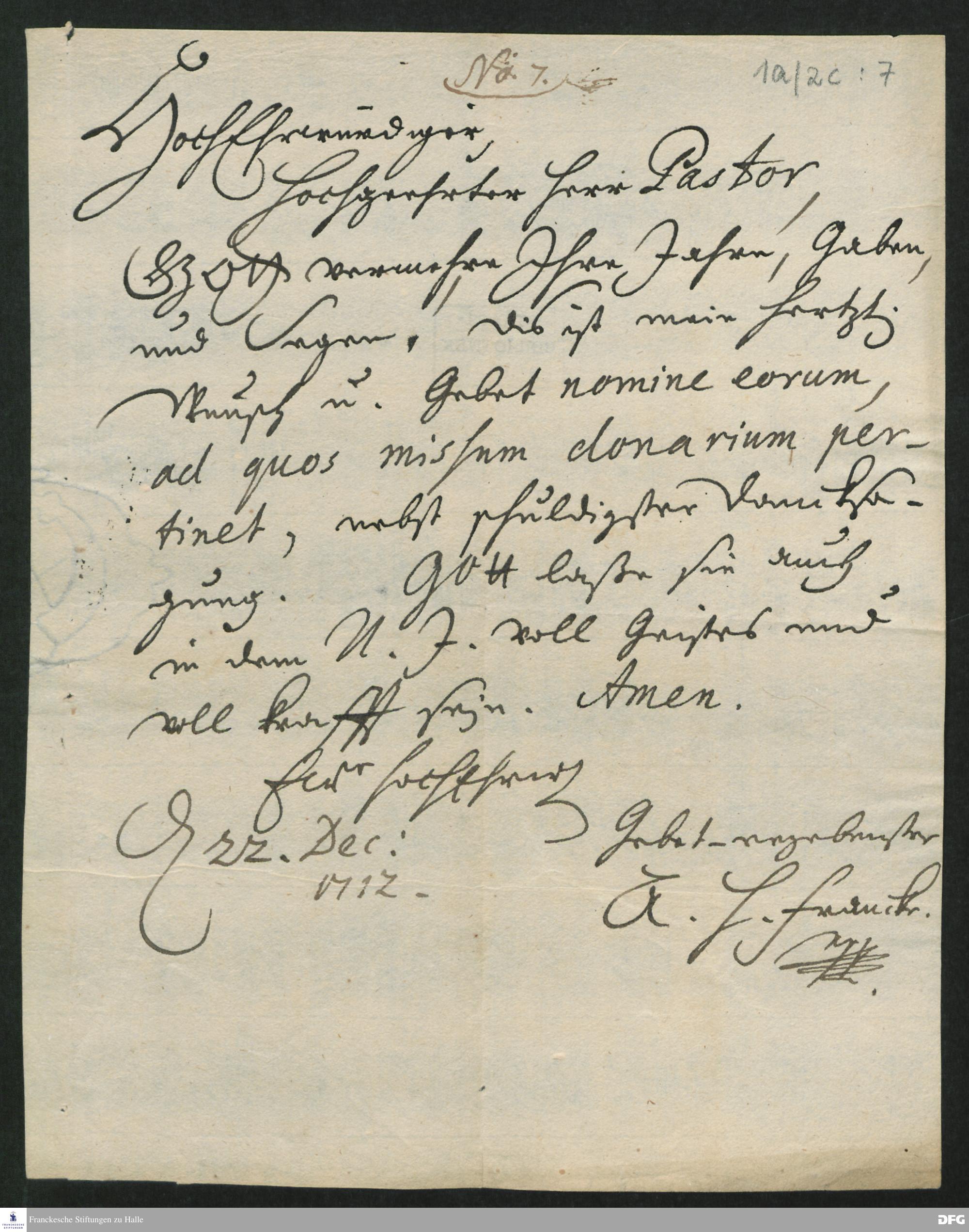 Brief von August Hermann Francke an Ernst Christian Philippi.
