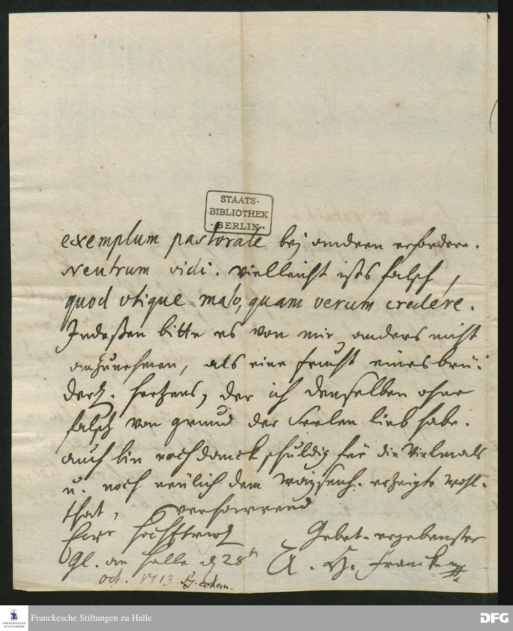 Brief von August Hermann Francke an Ernst Christian Philippi.