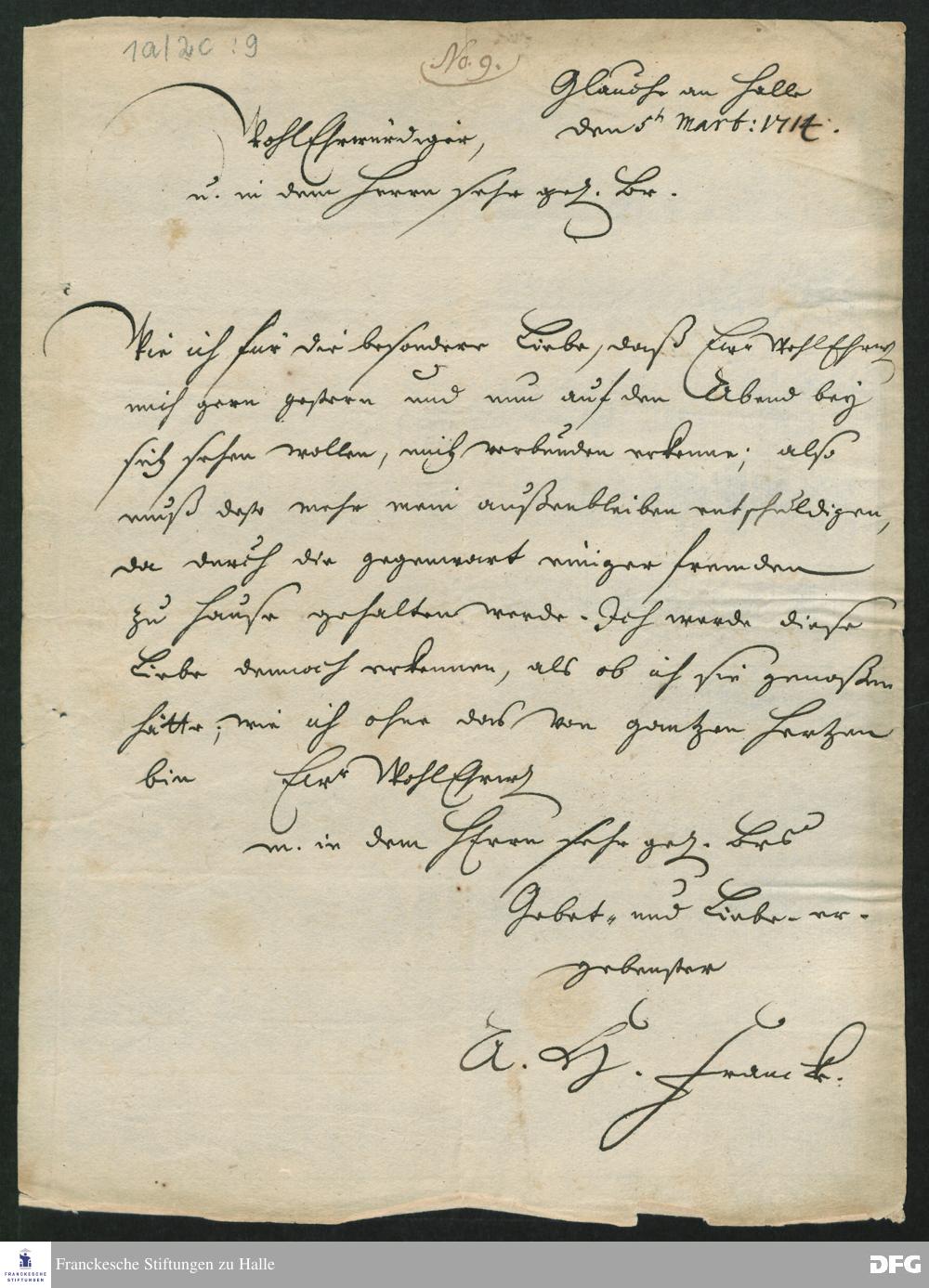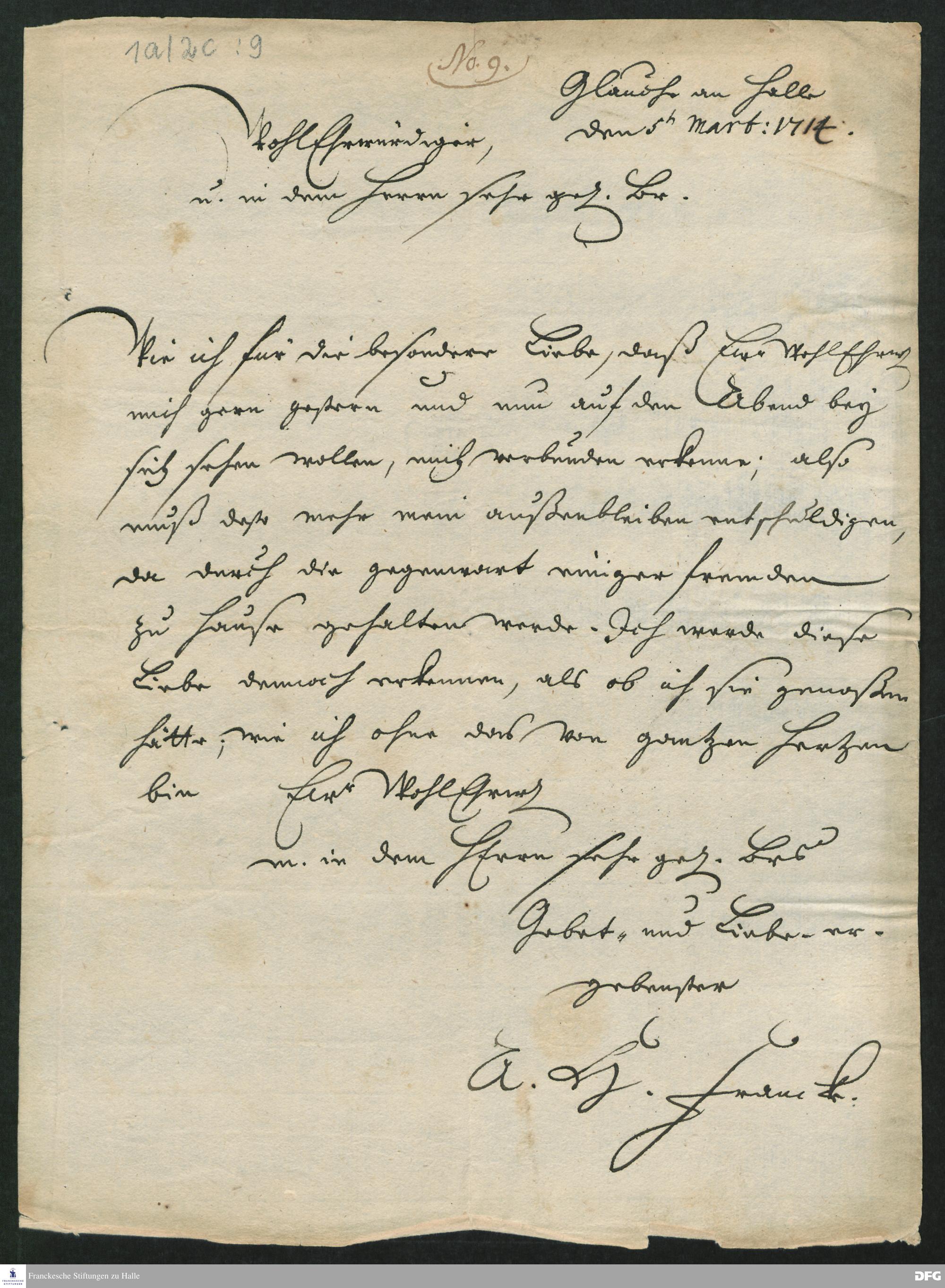 Brief von August Hermann Francke an Ernst Christian Philippi.