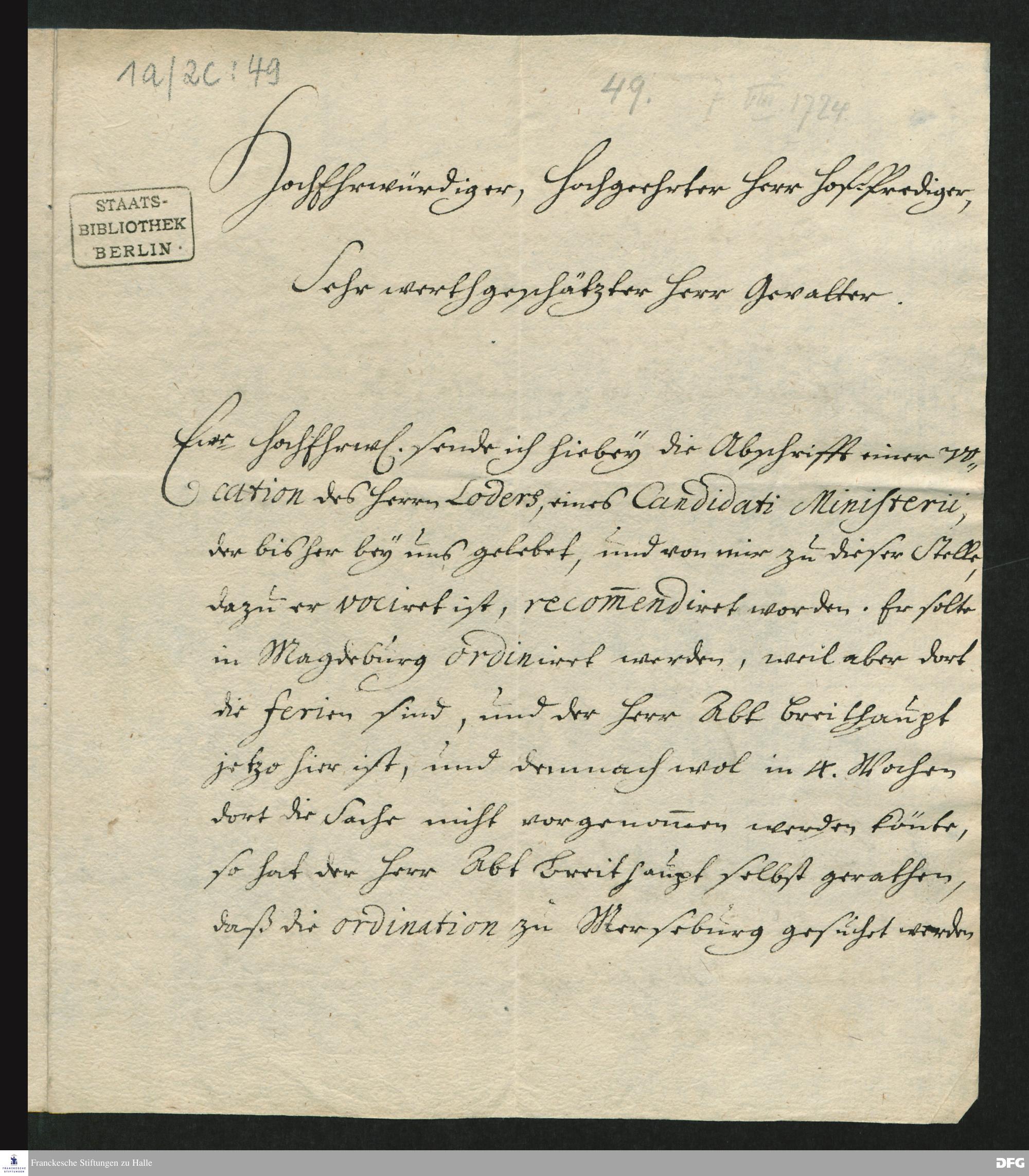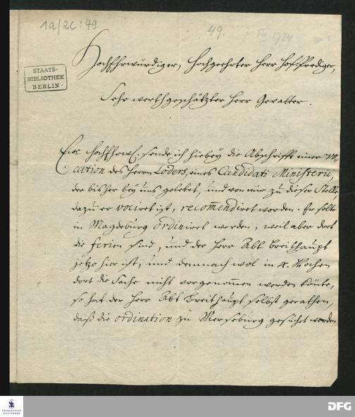 Brief von August Hermann Francke an Ernst Christian Philippi.