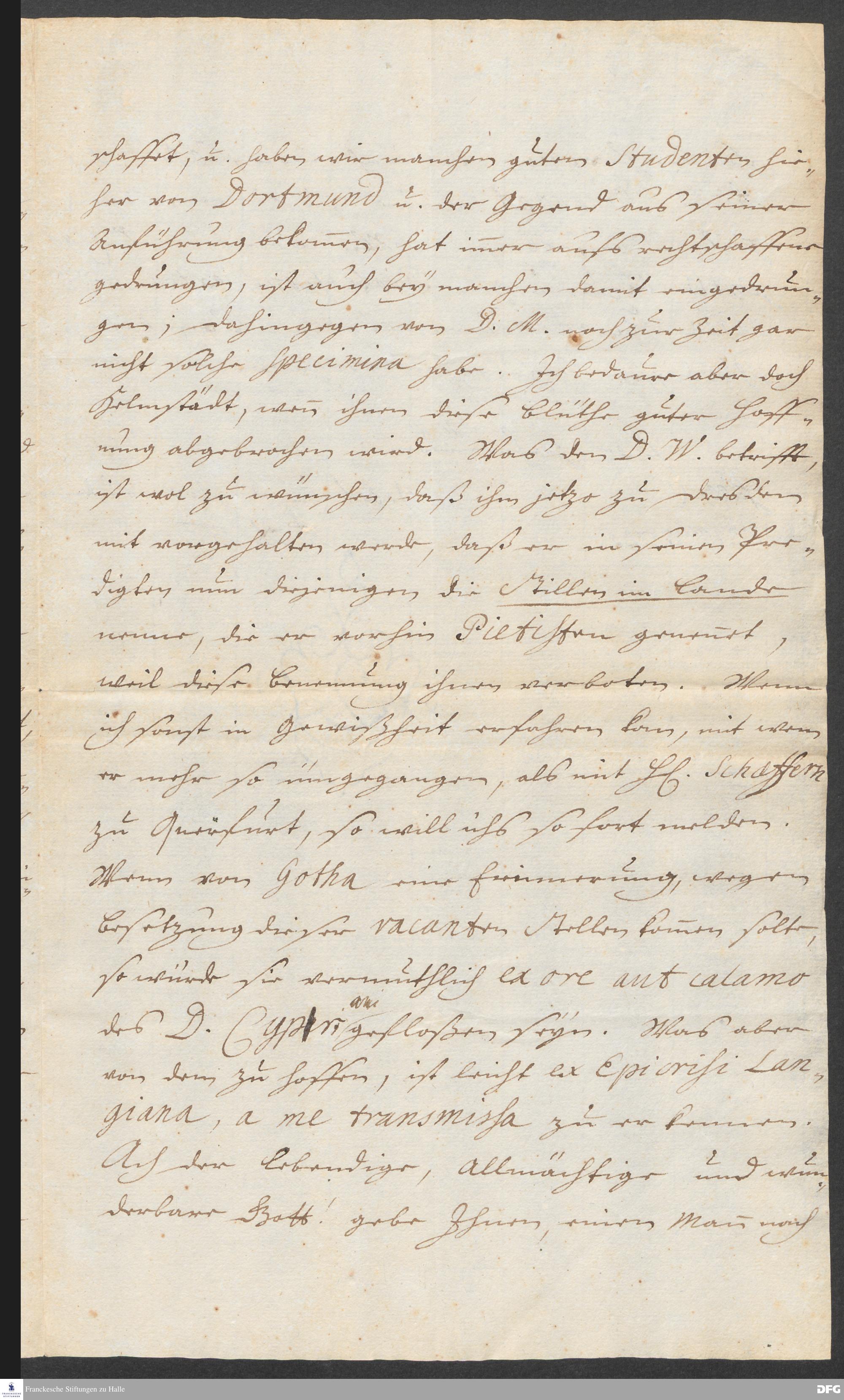 Brief von August Hermann Francke an Bernhard Walther Marperger.