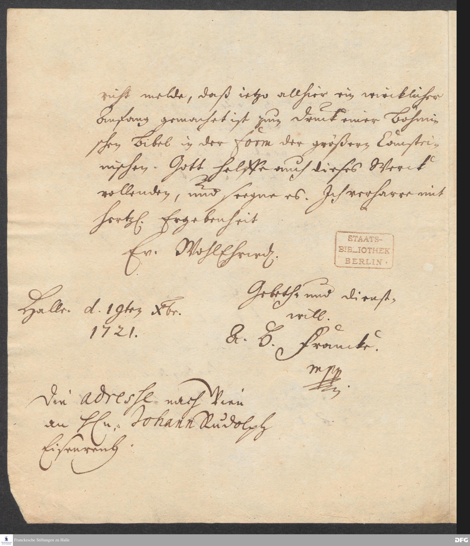 Brief von August Hermann Francke an Jeremias Schwartzwalder.