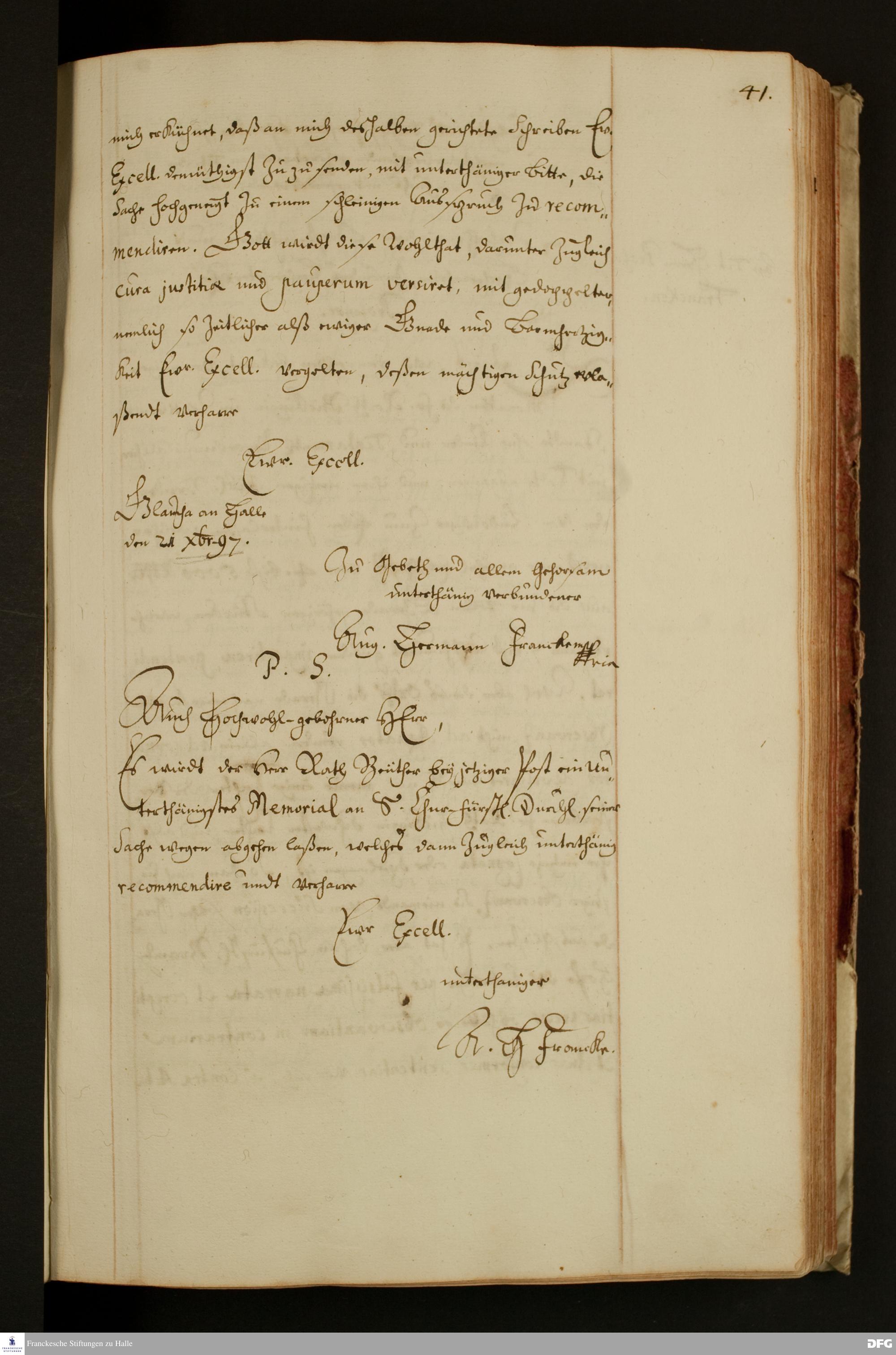 Brief von August Hermann Francke an Paul von Fuchs.