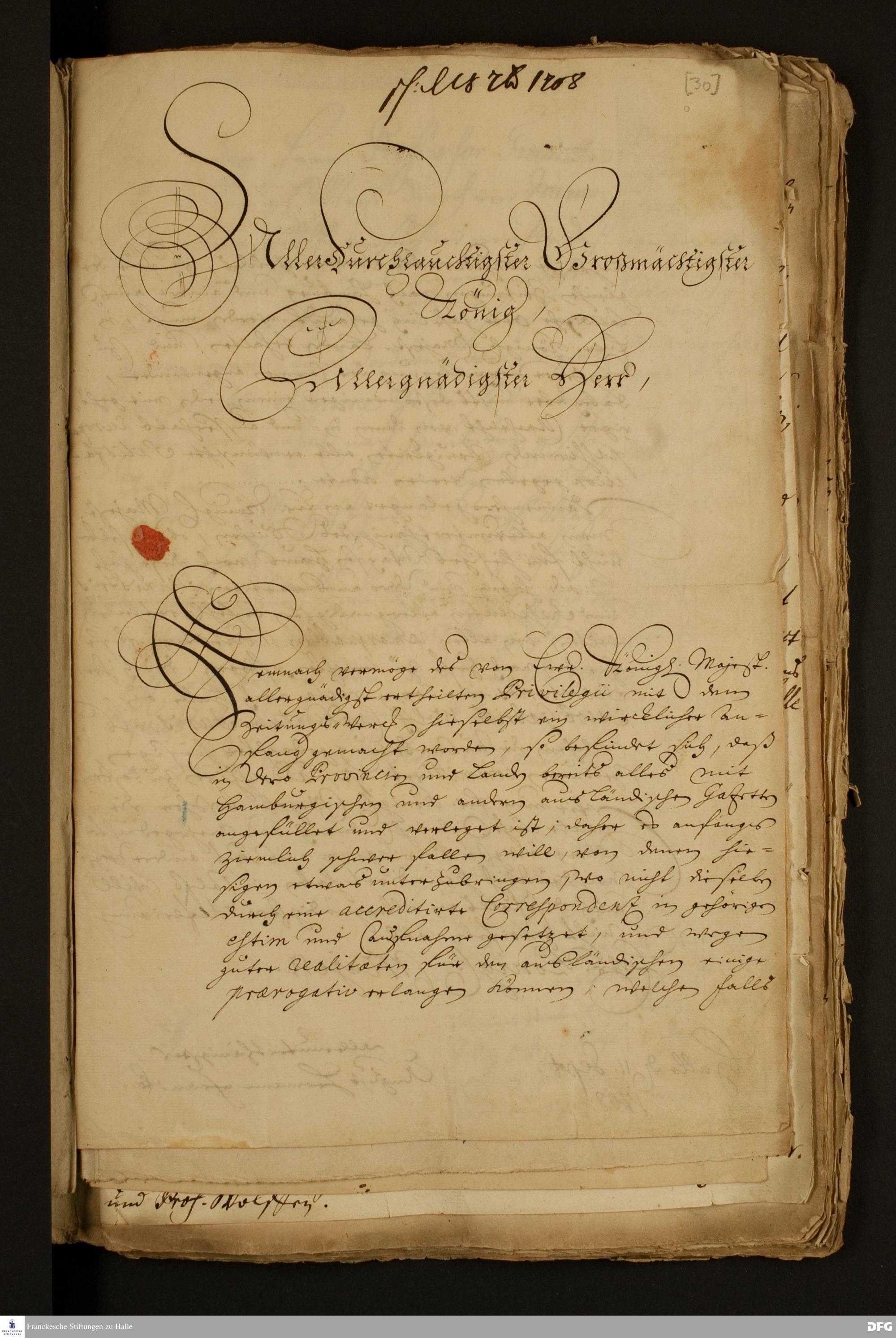 Brief von August Hermann Francke an Friedrich I., König in Preußen.