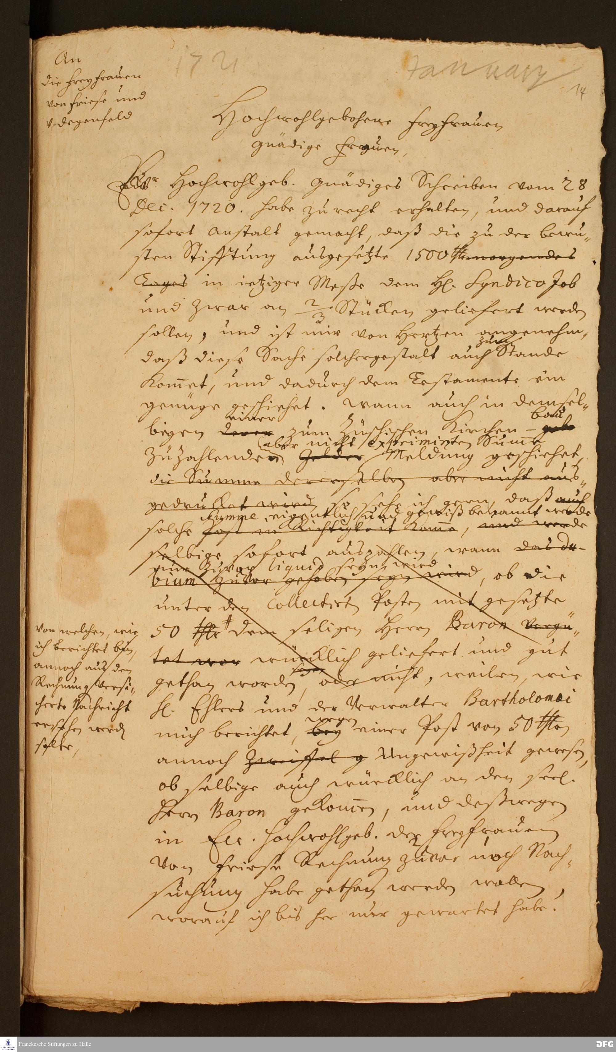 Brief von August Hermann Francke an Margaretha Helena von Degenfeld und Louisa Henrietta von Friesen.