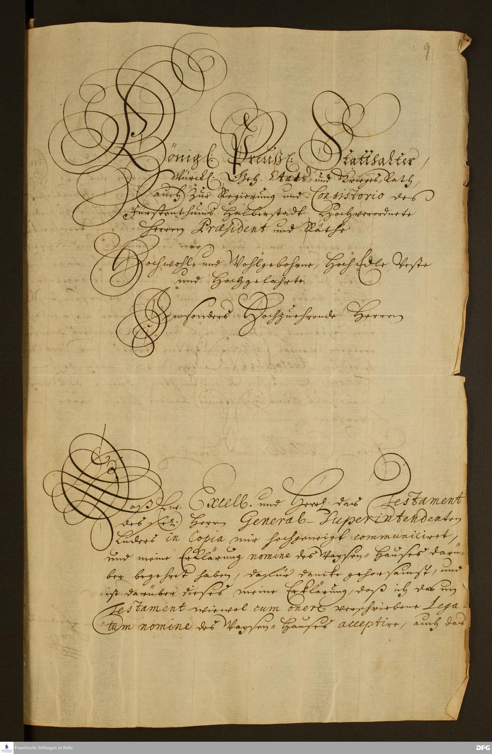 Brief von August Hermann Francke an die Königlich-Preußische Regierung in Halberstadt.