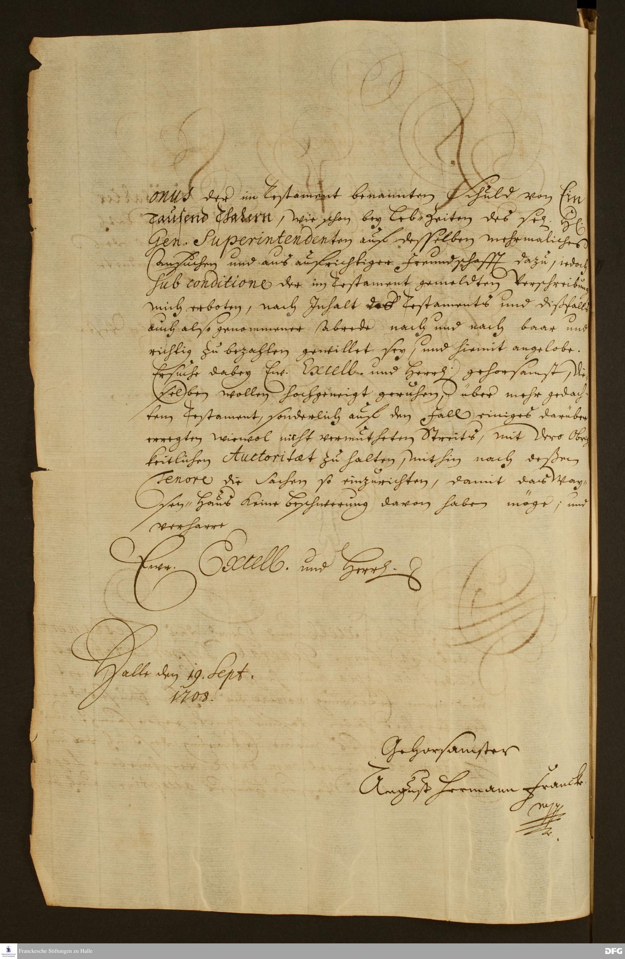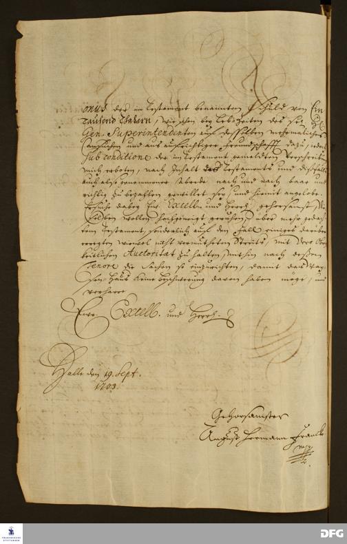 Brief von August Hermann Francke an die Königlich-Preußische Regierung in Halberstadt.