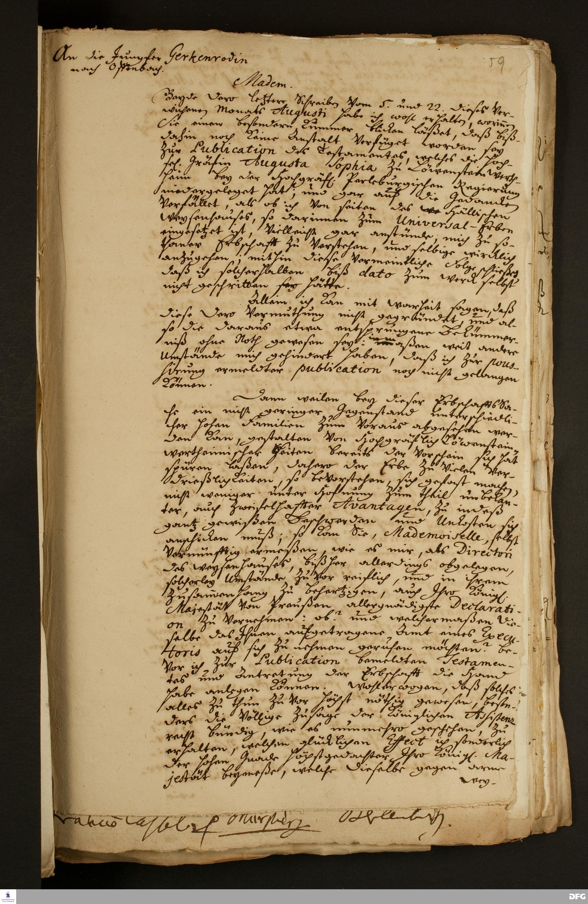 Brief von August Hermann Francke an Anna Louise Gerkenrode.