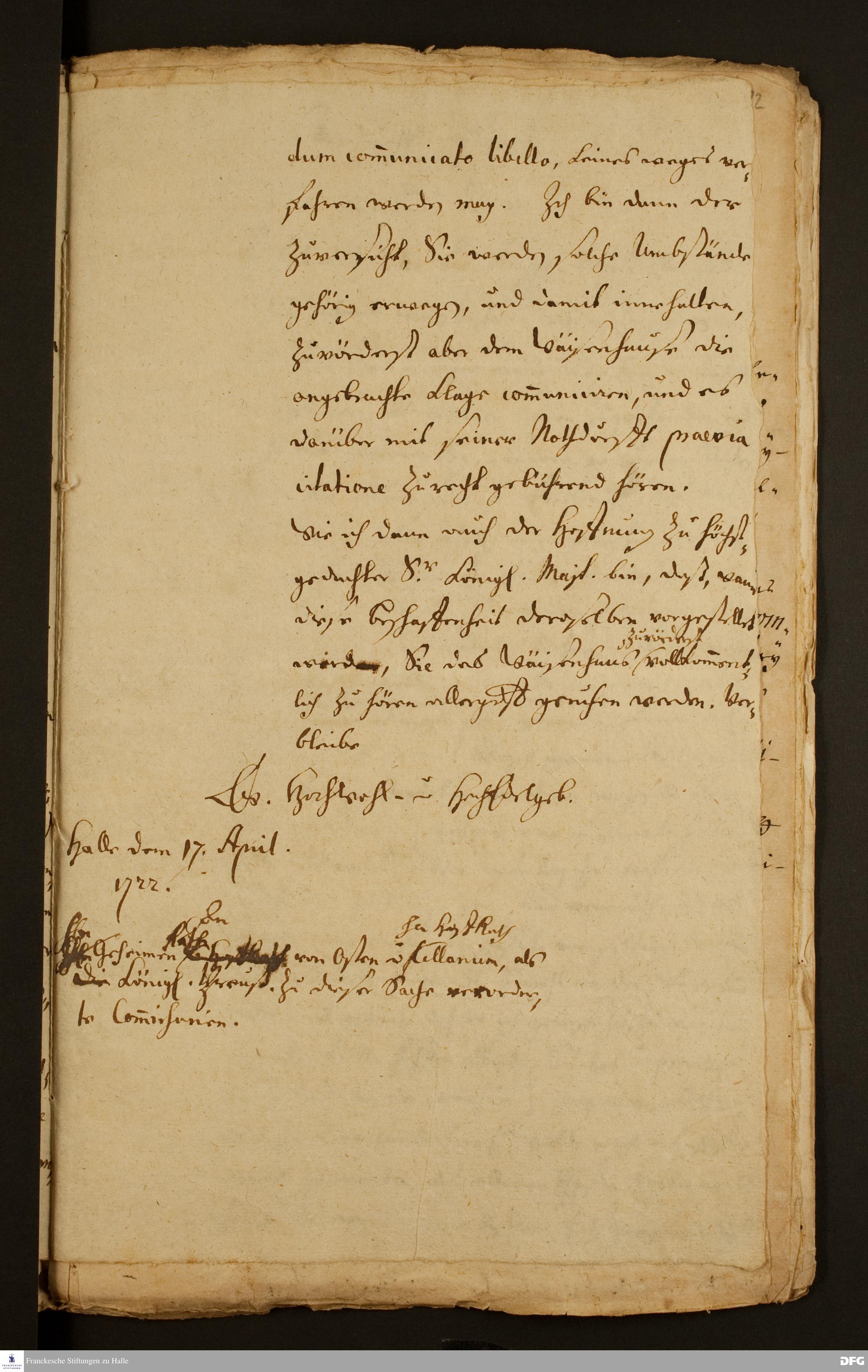 Brief von [August Hermann Francke] an die [M. C. von der Osten, Ludwig Johann Cellarius und Schmaltz].