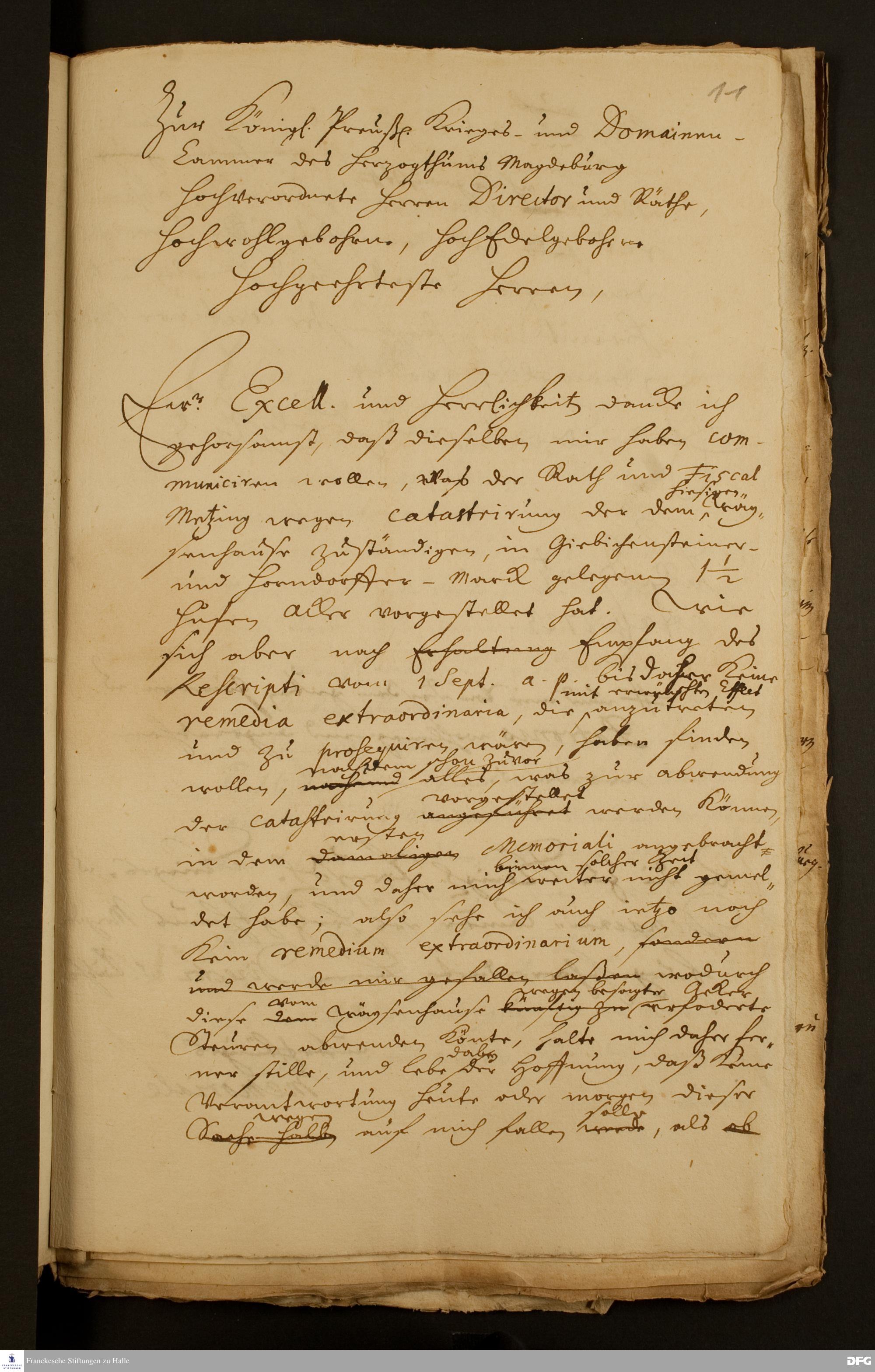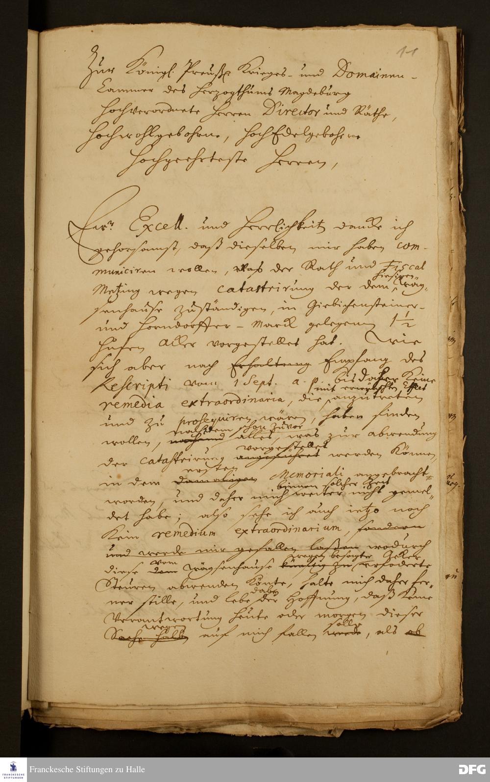 Brief von August Hermann Francke an die Kriegs- und Domänenkammer Magdeburg.
