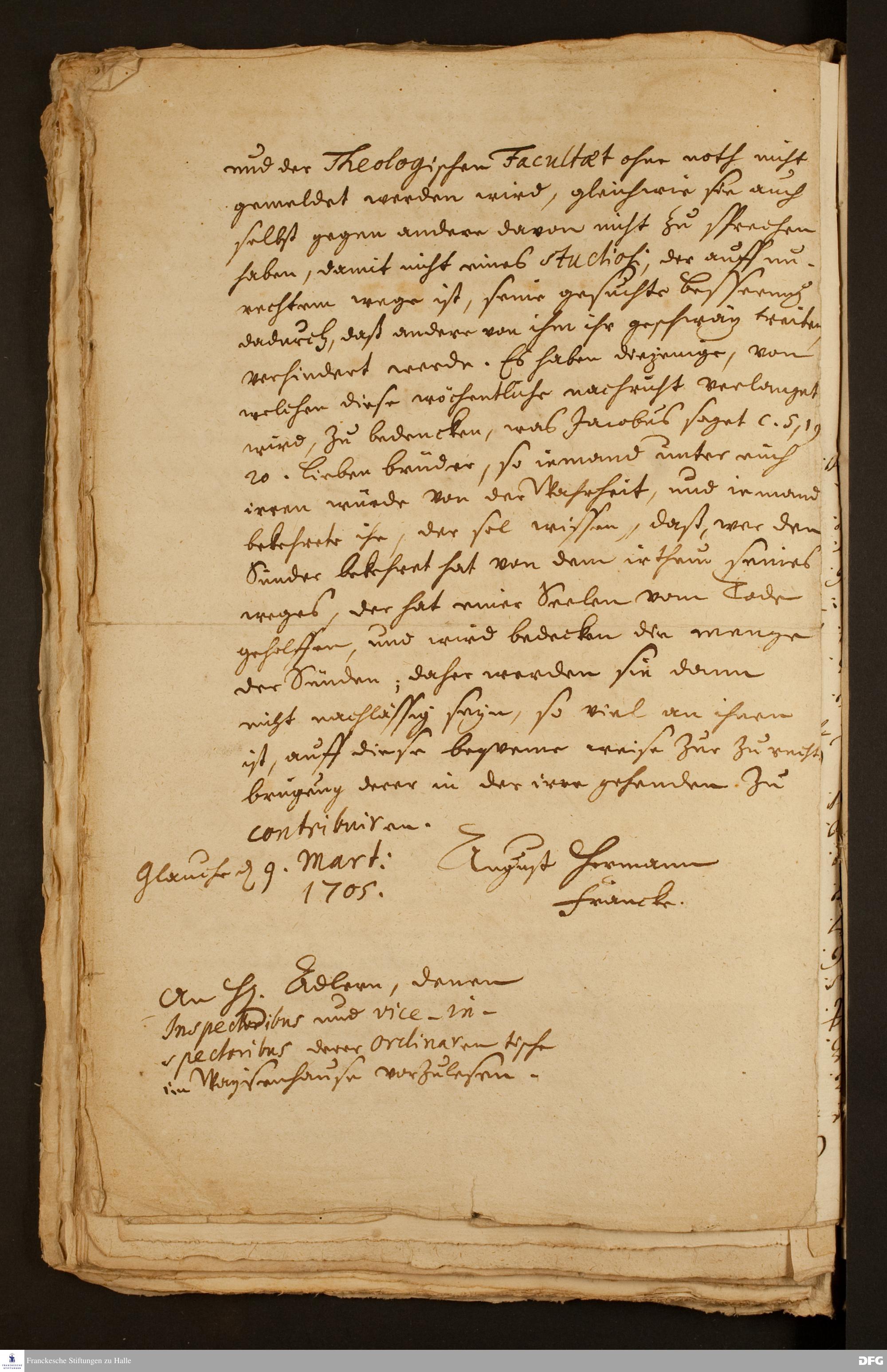 Brief von August Hermann Francke an Herrn Adler.
