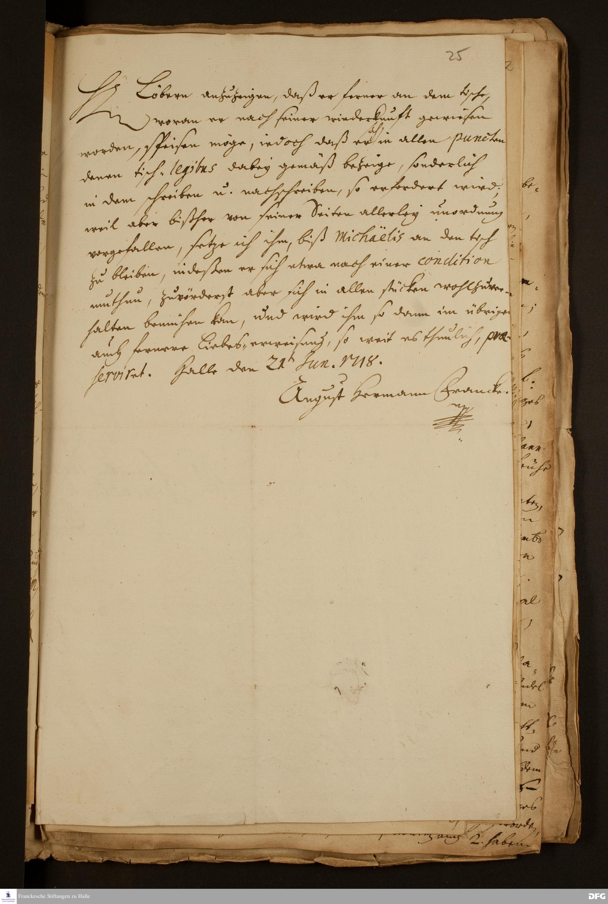 Brief von August Hermann Francke an Daniel Christian Francke.