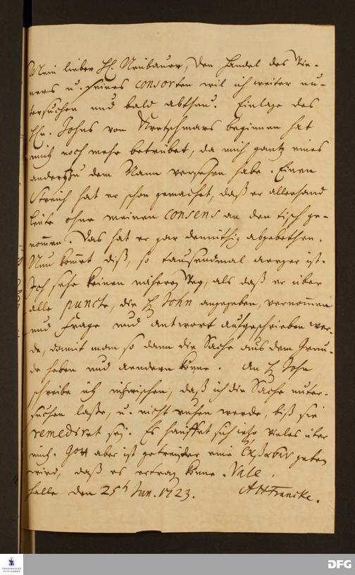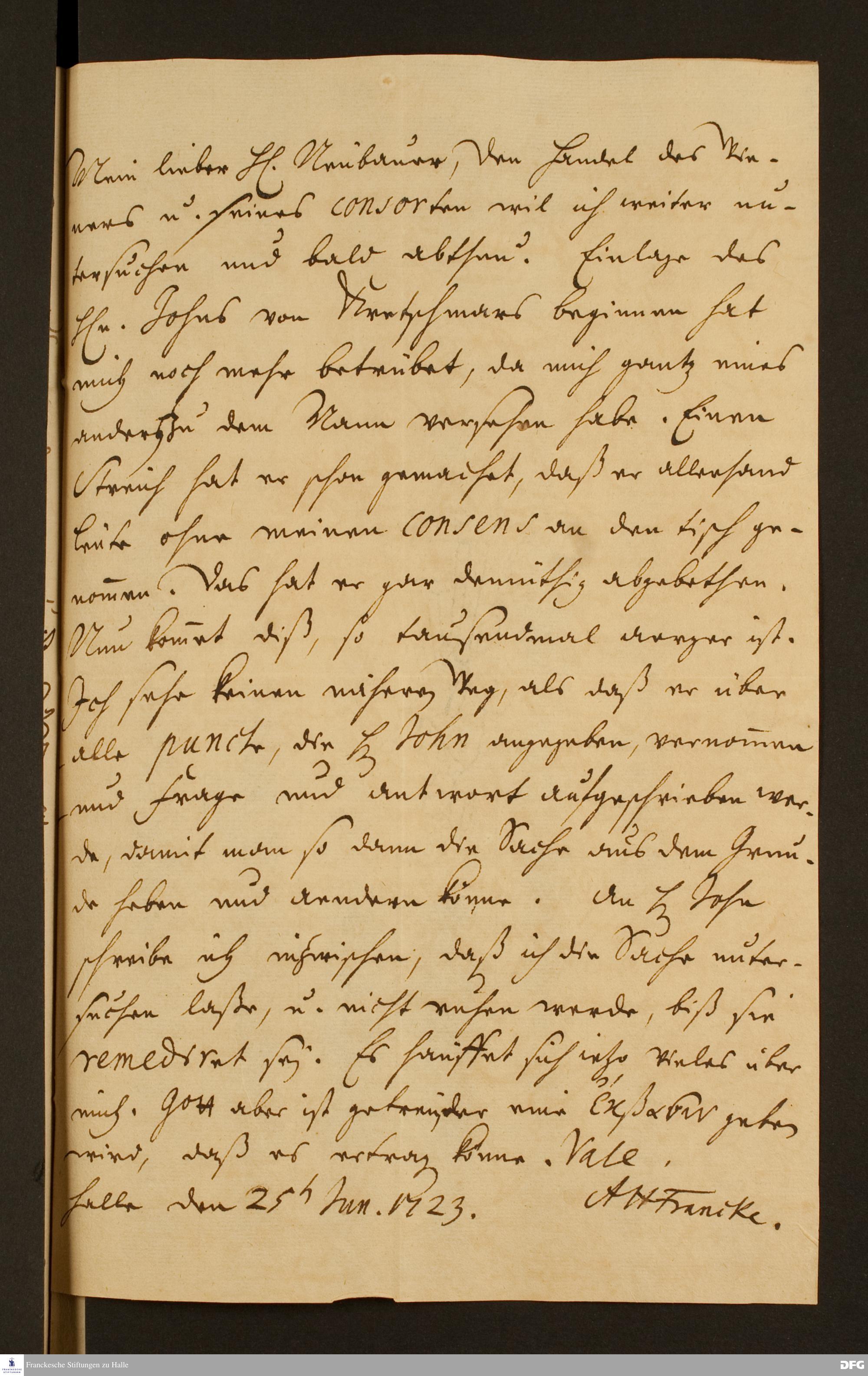 Brief von August Hermann Francke an Georg Heinrich Neubauer.