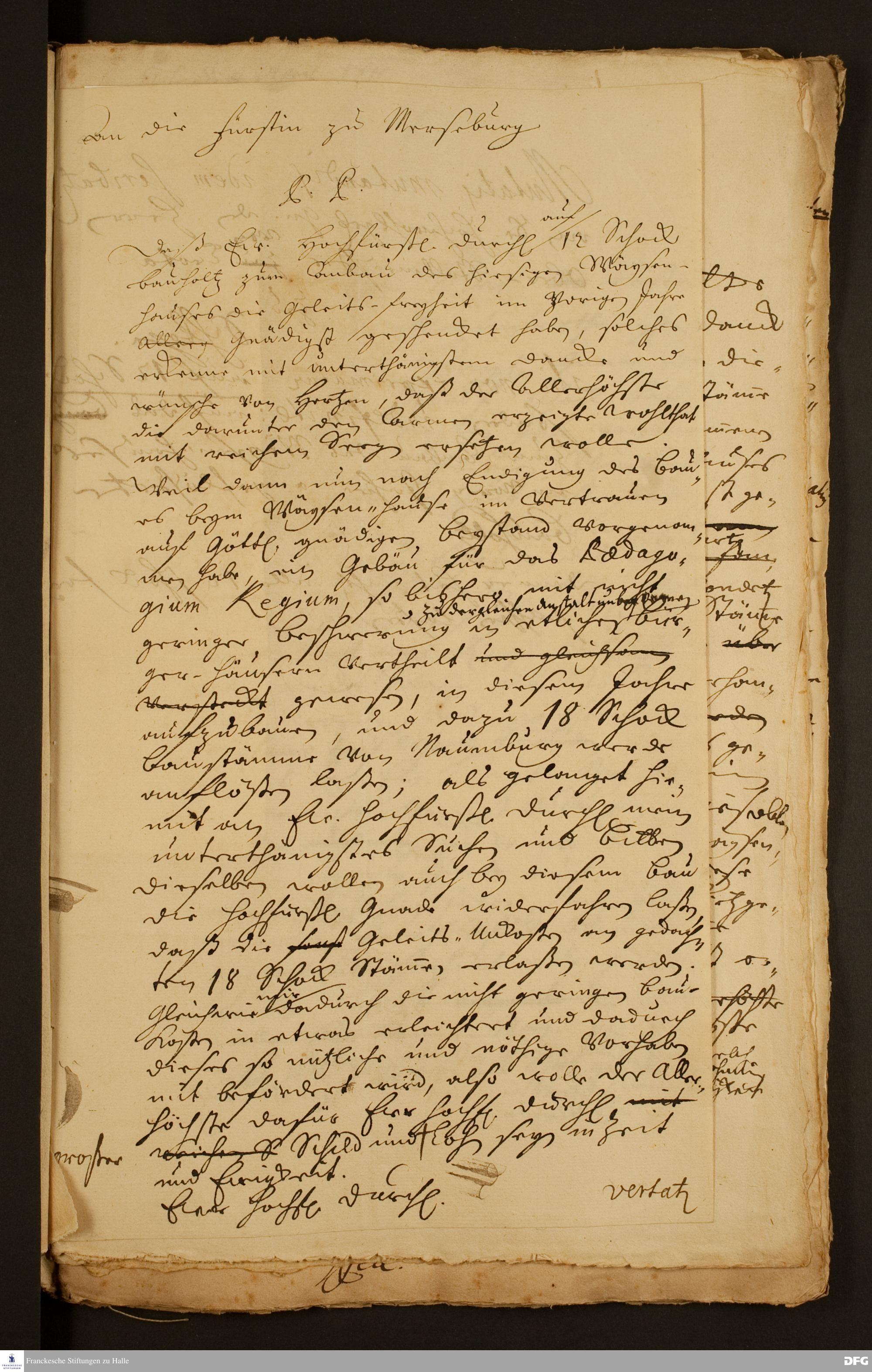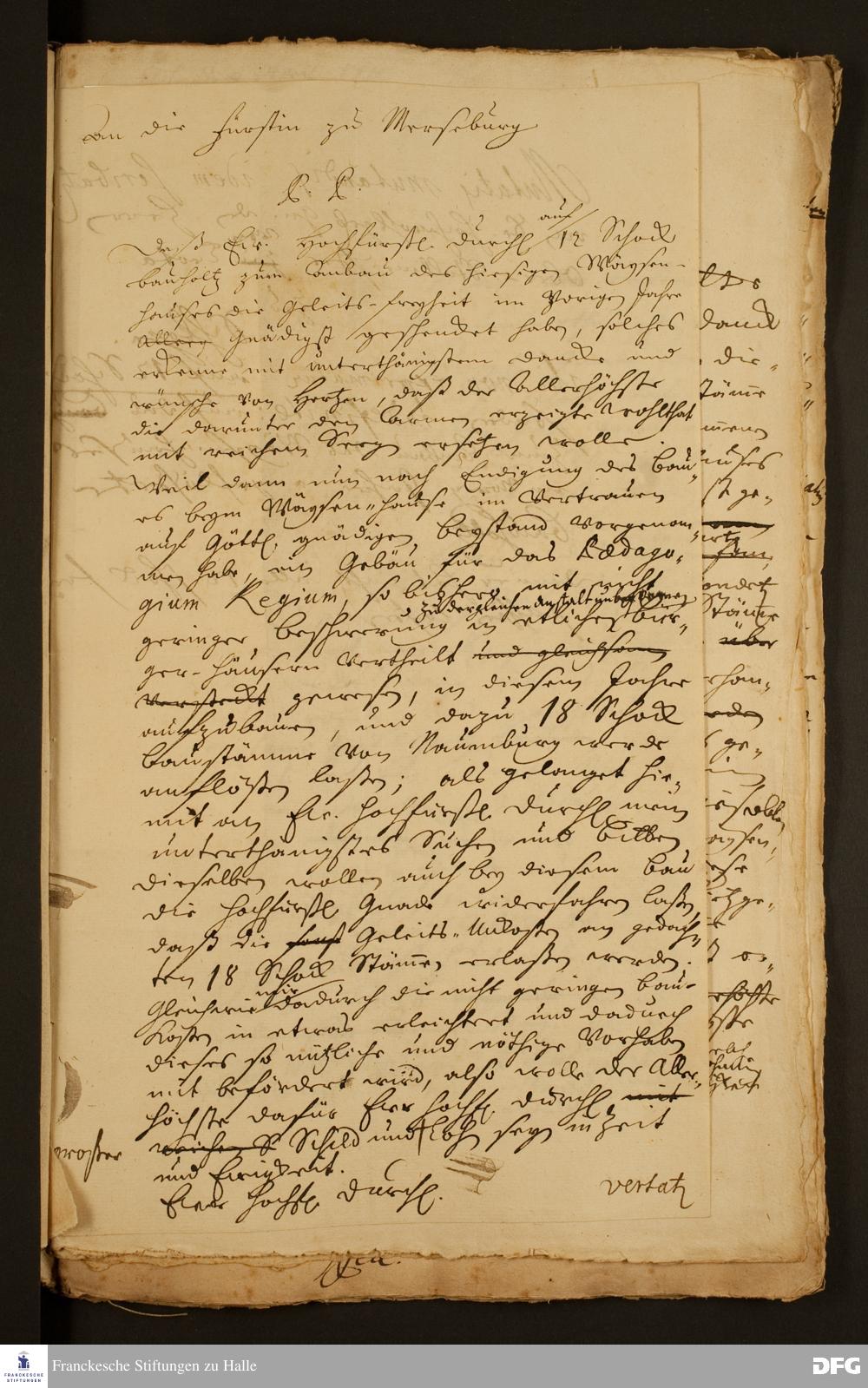 Brief von [August Hermann Francke] an [Erdmuthe Dorothea von Sachsen-Merseburg].