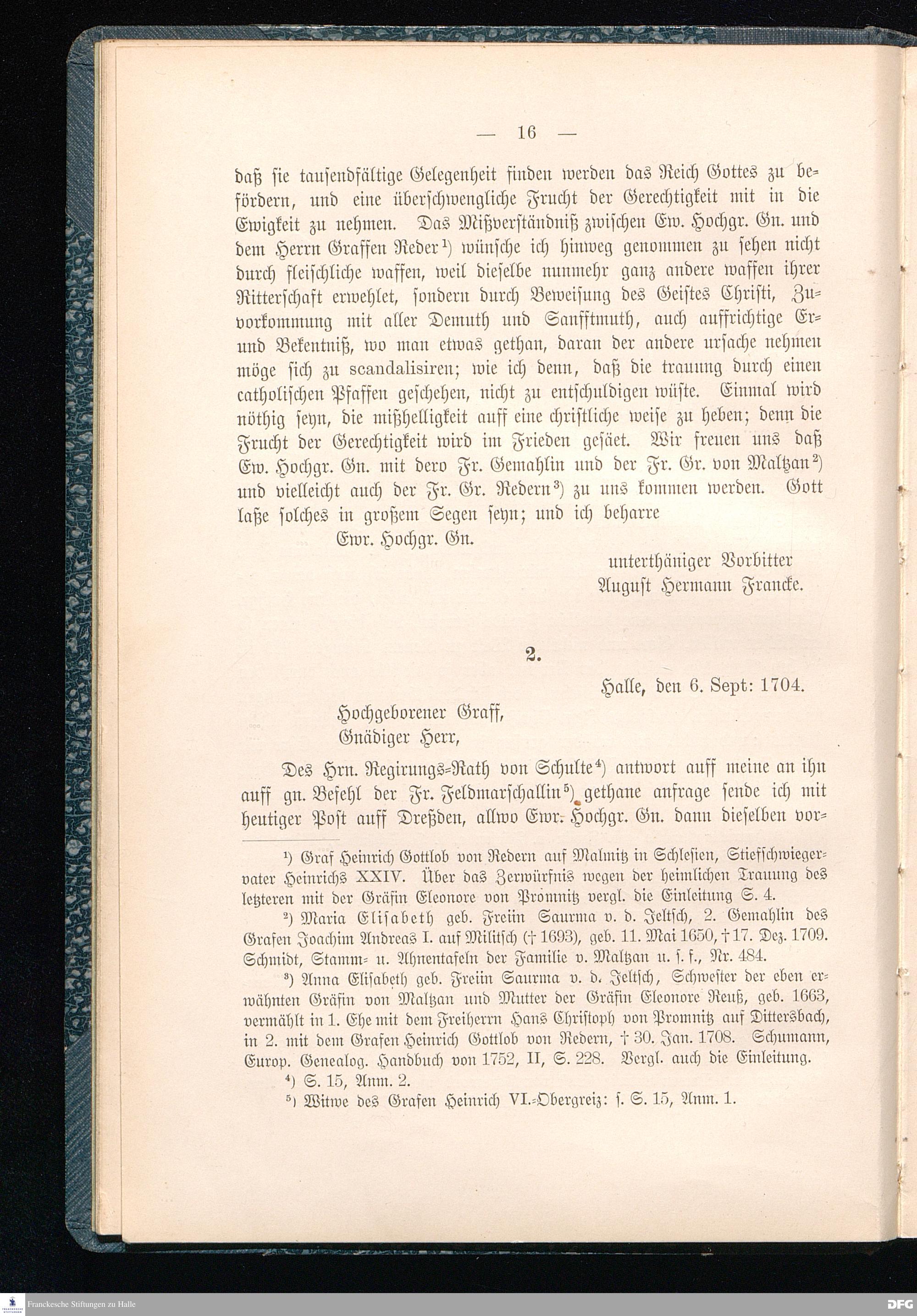 Brief von August Hermann Francke an Heinrich XXIV. v. Reuß-Köstritz.