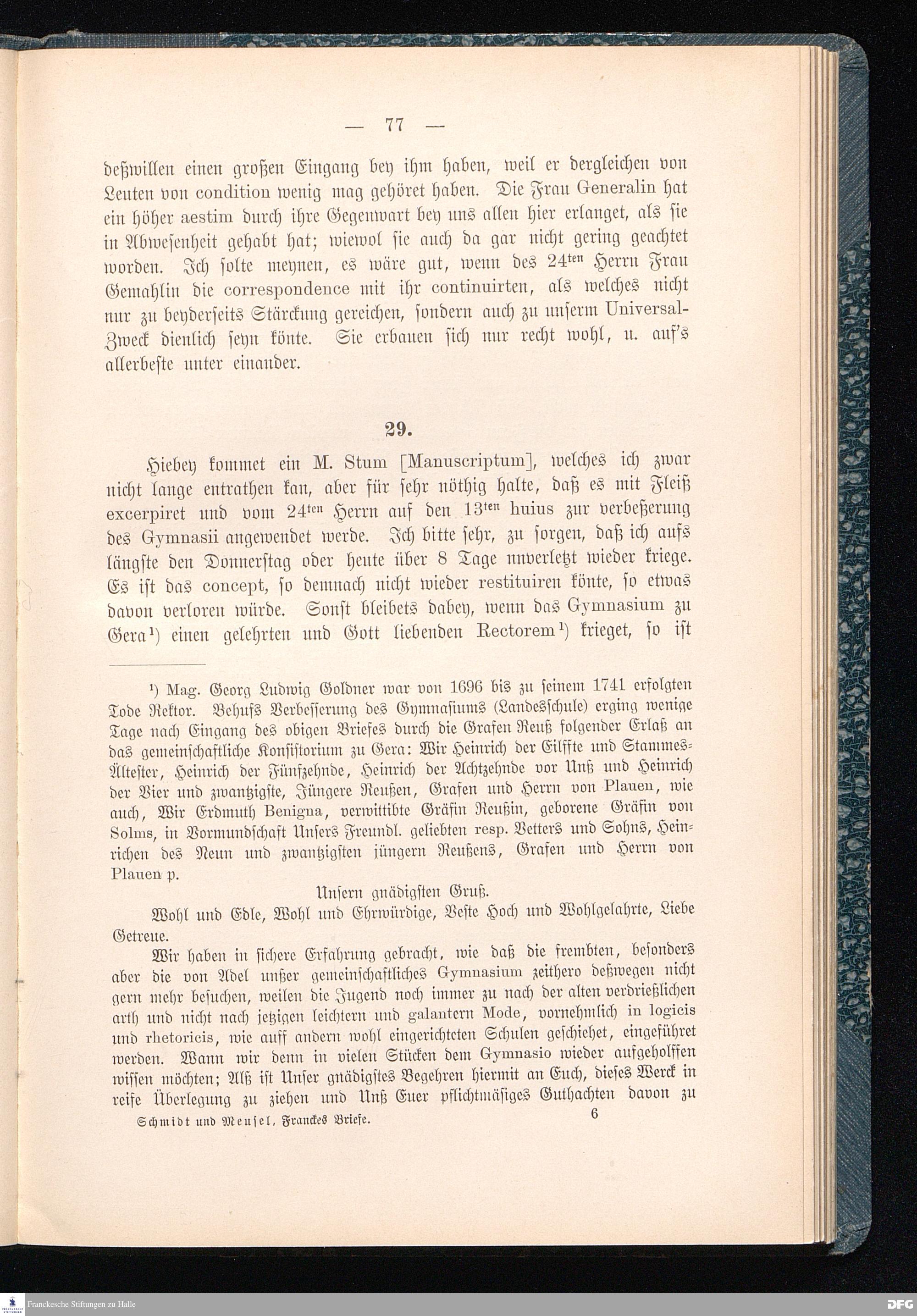 Brief von August Hermann Francke an Heinrich XXIV. v. Reuß-Köstritz.