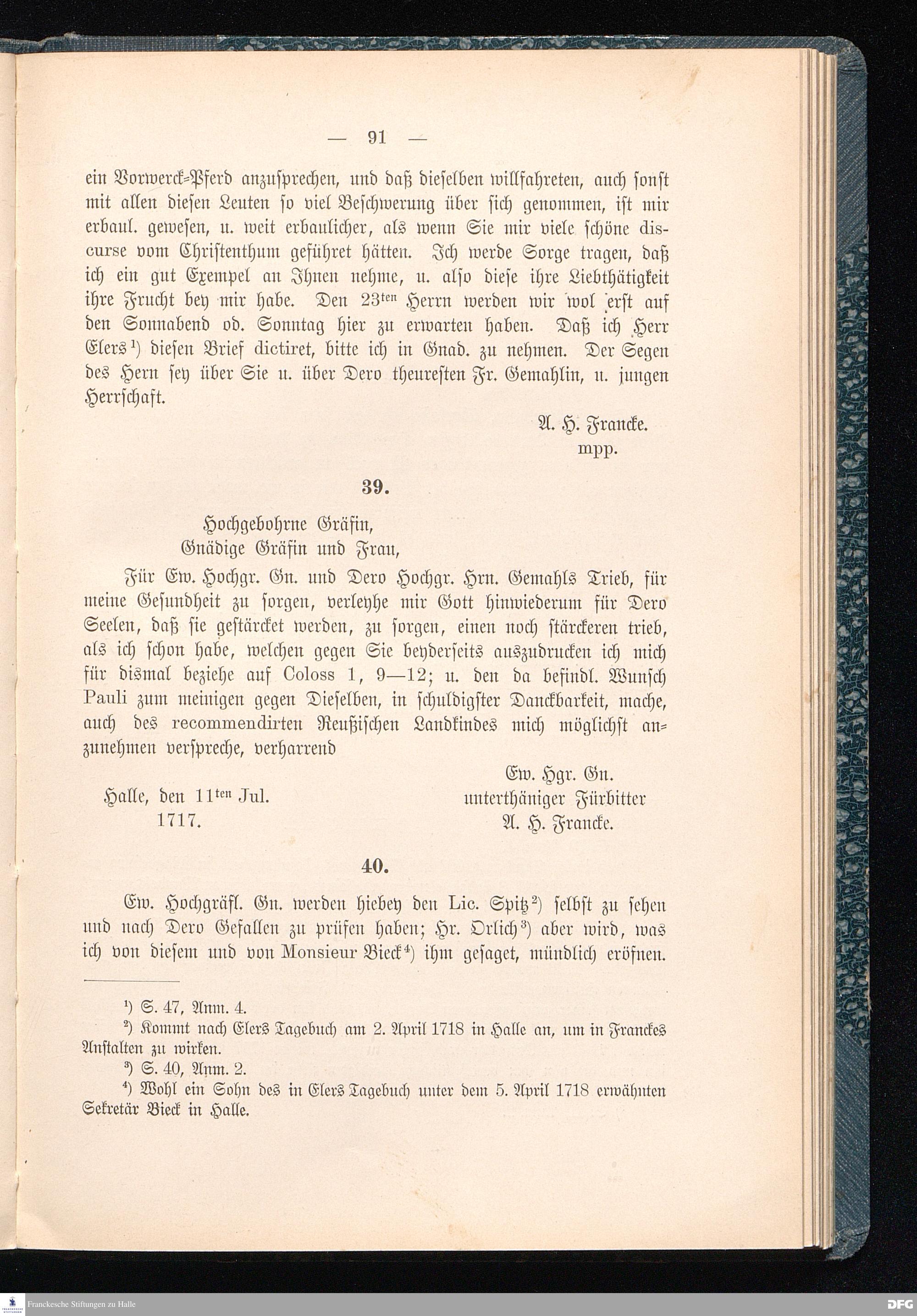 Brief von August Hermann Francke an Heinrich XXIV. v. Reuß-Köstritz.