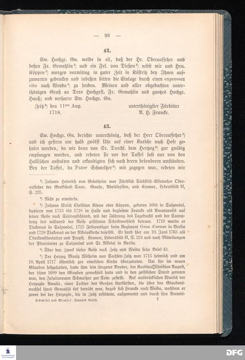 Brief von August Hermann Francke an Heinrich XXIV. v. Reuß-Köstritz.