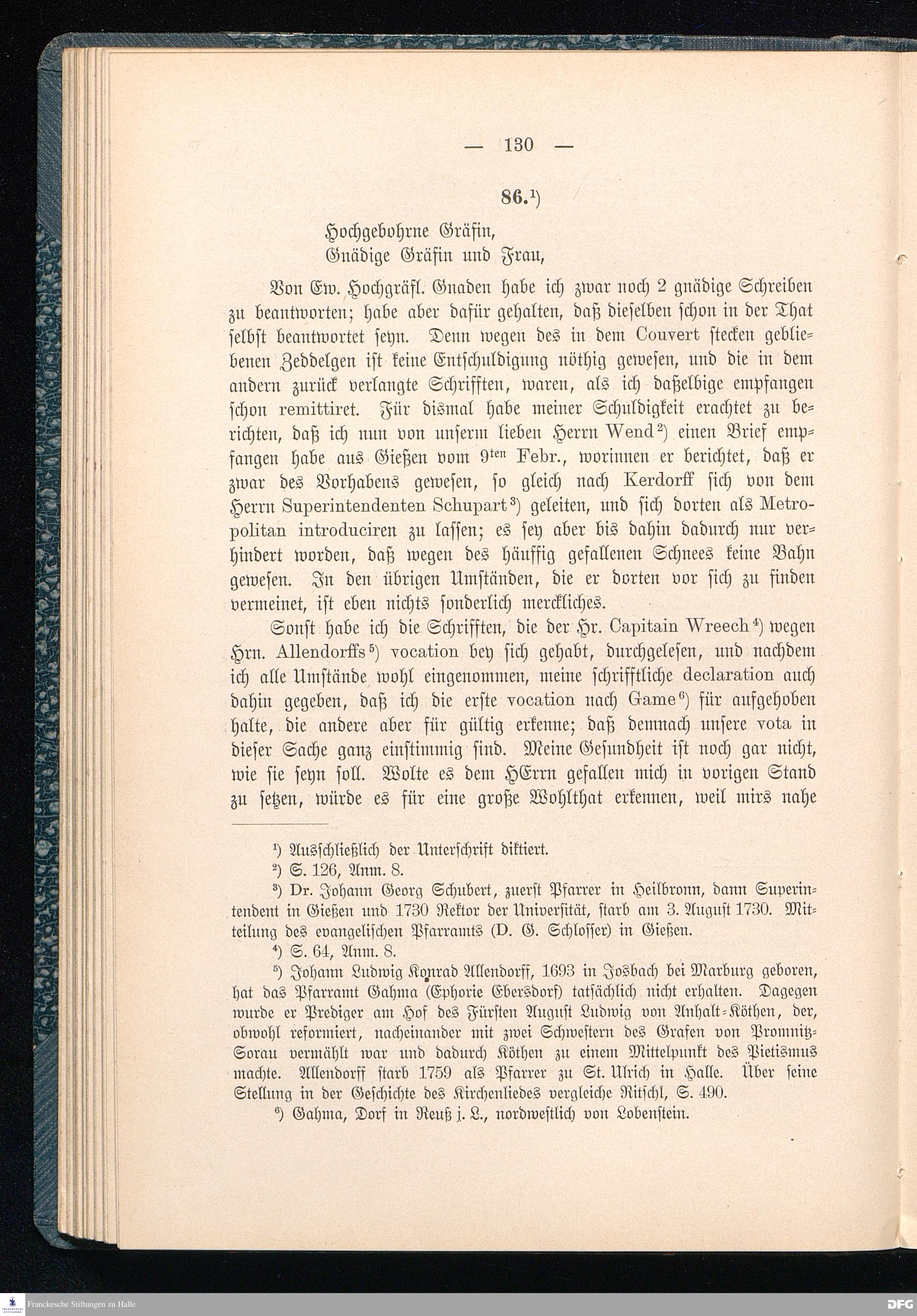 Brief von August Hermann Francke an Maria Eleonore Emilia v. Reuß-Köstritz.