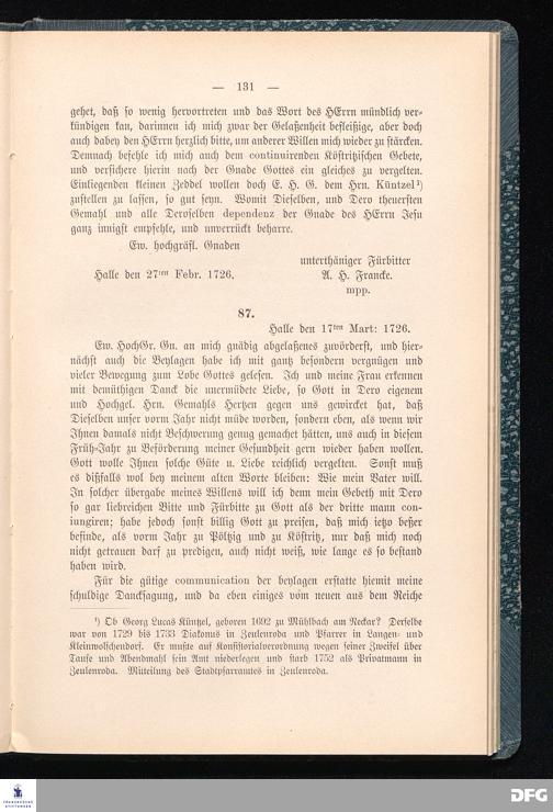 Brief von August Hermann Francke an Maria Eleonore Emilia v. Reuß-Köstritz.