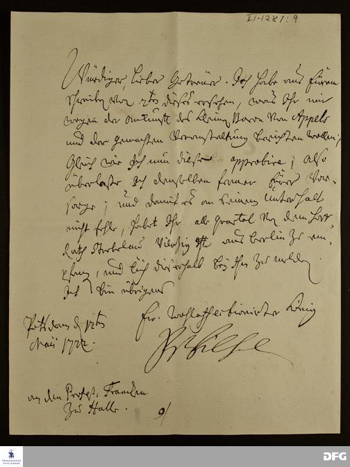 Brief von Friedrich Wilhelm I., König in Preußen, an August Hermann Francke.