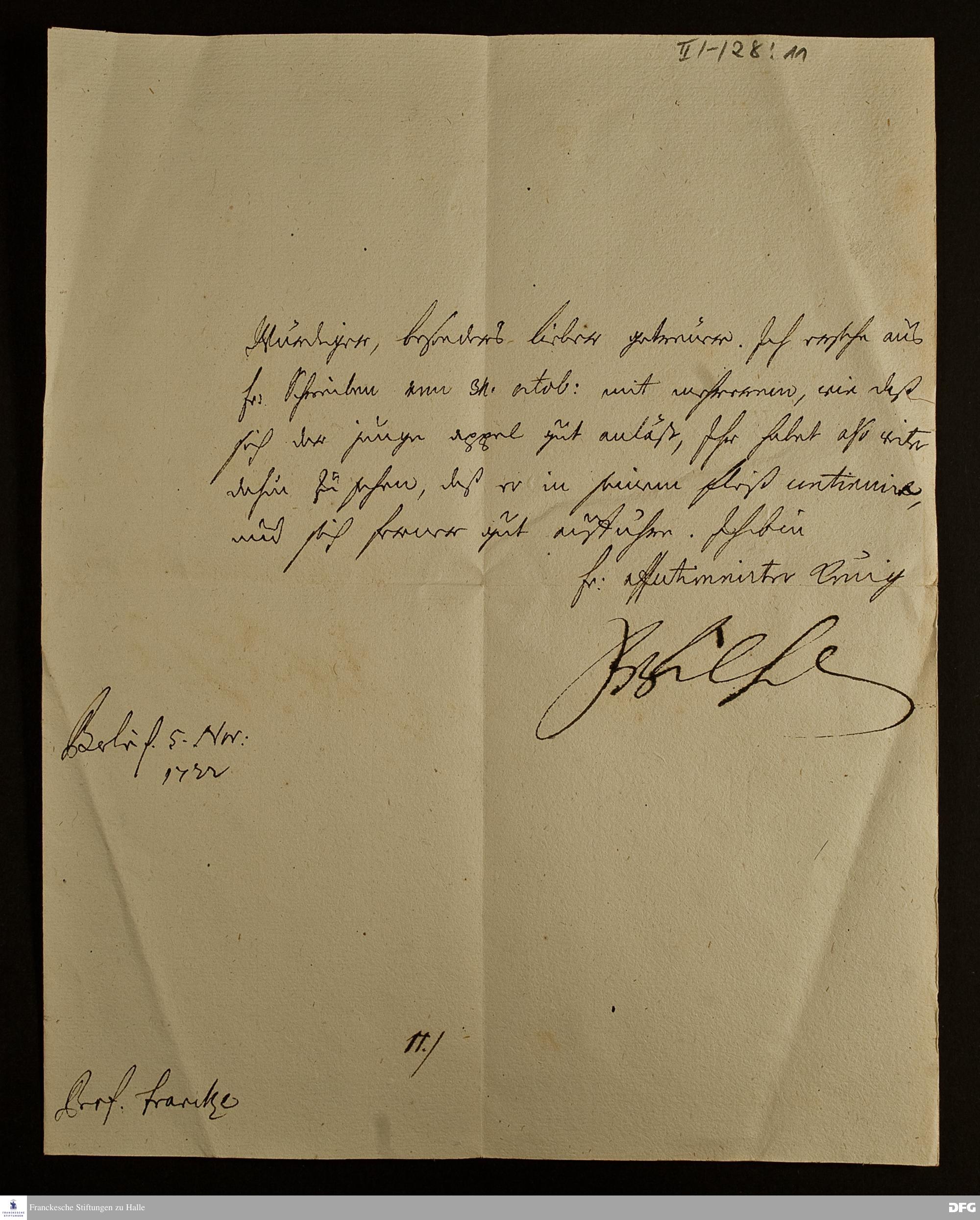 Brief von Friedrich Wilhelm I., König in Preußen, an August Hermann Francke.